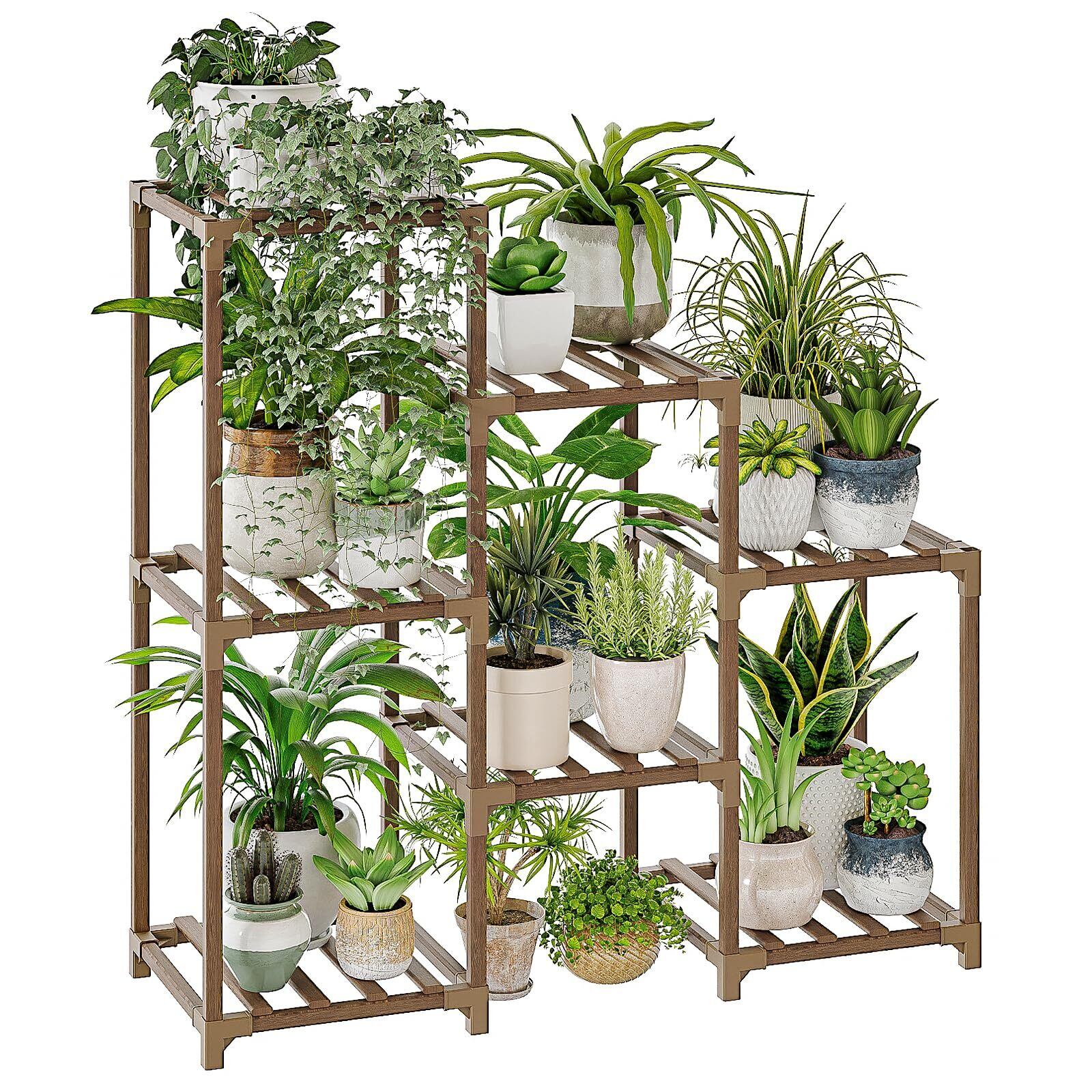 Bamworld フラワースタンド 室内屋外 3段 プランタースタンド 園芸 観葉植物 台 木製花台 ガーデンラック 植物 棚 植木鉢台 ガーデン ベランダ