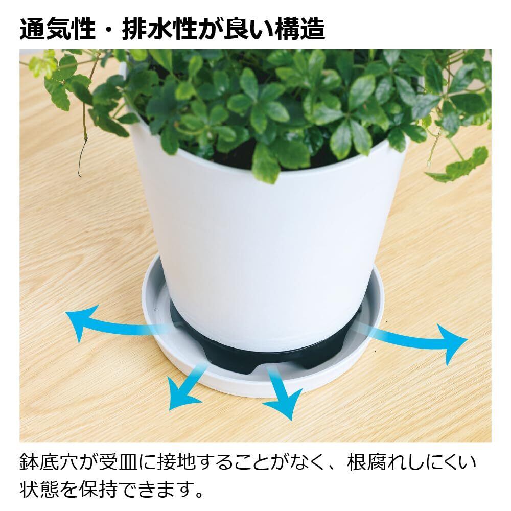 ■通気性と排水性を高め、根腐れしにくい状態を保持できます。 ■通気性・排水性が良い構造で、鉢底穴が受皿に接地することがなく、根腐れしにくい状態を保持できます。 ■鉢と受皿の間に発生する、汚れやぬめりを防ぐことができます。 ■水差し時の水こぼれ防止、与えた水が鉢底から流れ出るのがわかりやすく、水が溢れるのを防ぎます。