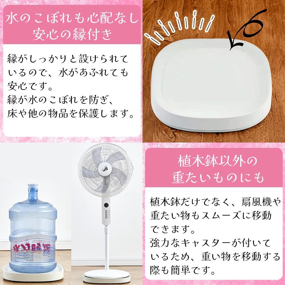 【キャスター付き植木鉢台】 重い植木鉢や花瓶などを簡単に移動できる植木鉢台です。高品質の厚いPPプラスチックで作られており、耐荷重は約75kgです。底面には4つの360度回転キャスターが付いており、床に優しくスムーズに動きます。外観はシンプルでおしゃれで、キャスターは隠されたデザインになっています。余分な水やこぼれた土を集めることもできます。