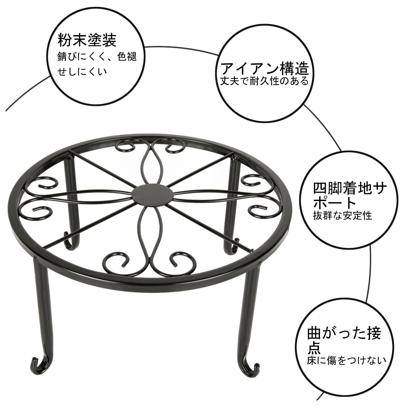 虫・地熱対策:フラワースタンド 花台の表面には防錆塗料を使用して、多重防錆ペイント処理して、植木鉢台の使用時間がもっと長いです。高さがあるので、地面との間に空間ができて、虫登り防止や通気性に優れています。屋内外への設置にも適しています。