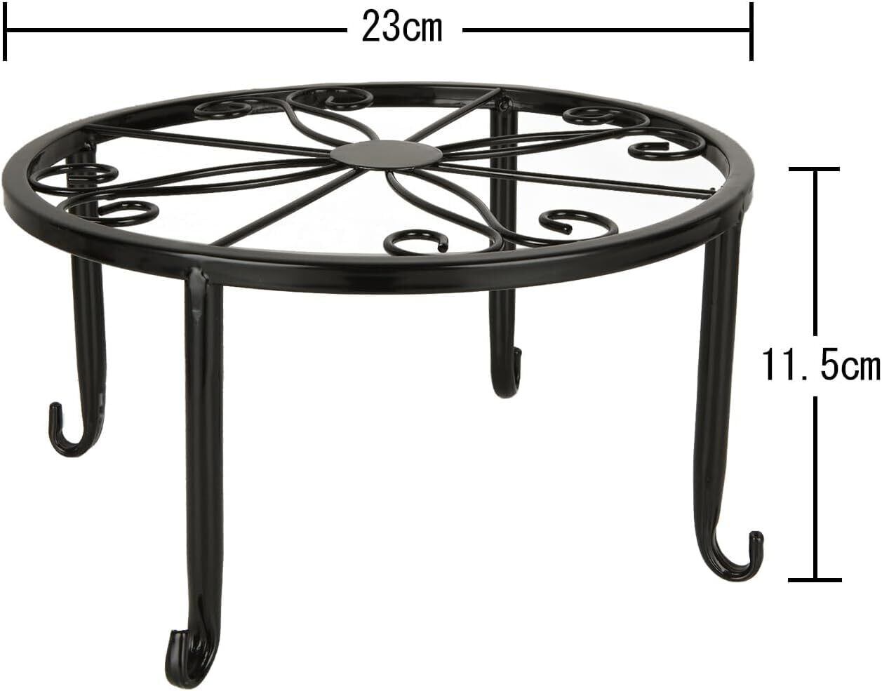 フラワースタンド アイアン 花台 直径:23cm 高さ11.5cm 鉢台 植木鉢台 猫脚付鉢置き 観葉植物 台 園芸ラック 100lb耐荷重 籐の様式 室内 屋外 おしゃれ(黒 4個)