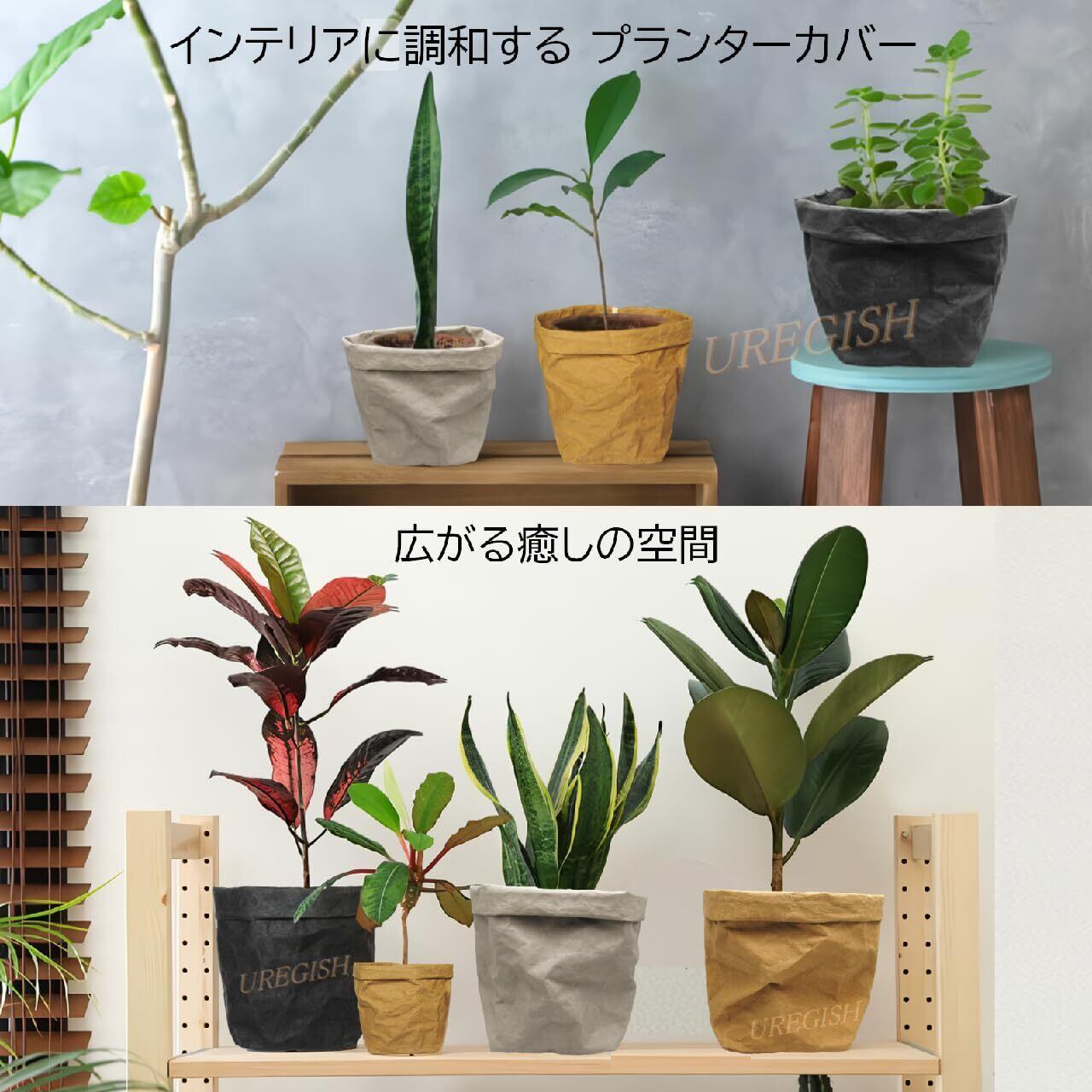 【 着せ替え簡単!インテリアに調和するプランターカバー 】一度植えた鉢を交換するのは大変ですがこのカバーを使えば簡単に鉢の着せ替えができるのでお部屋のイメージに合わせておしゃれに模様替えができます。天然素材のクラフト紙を使用した鉢カバーは、主張が強すぎないためインテリアに調和しやすいのが特徴です。