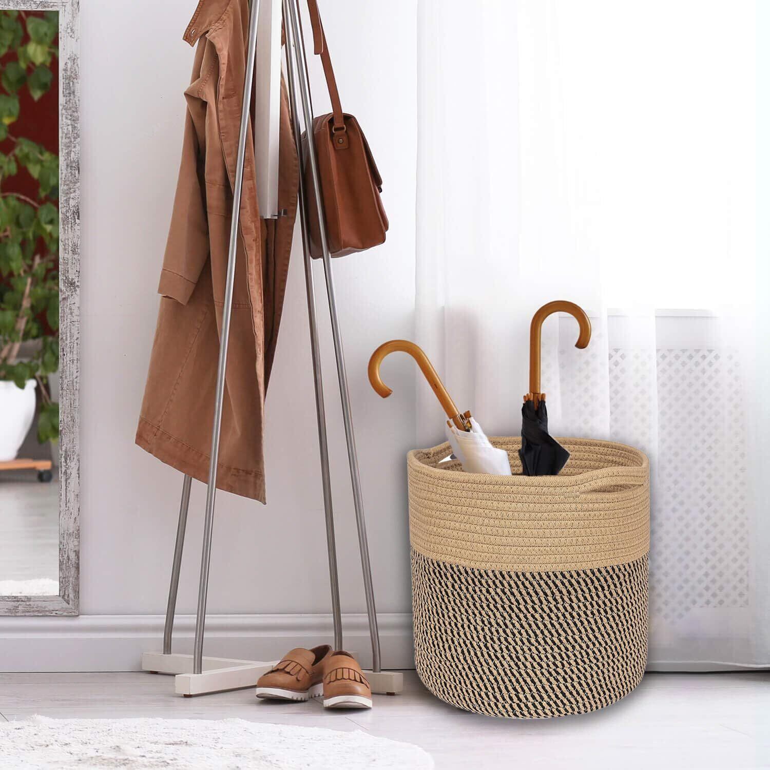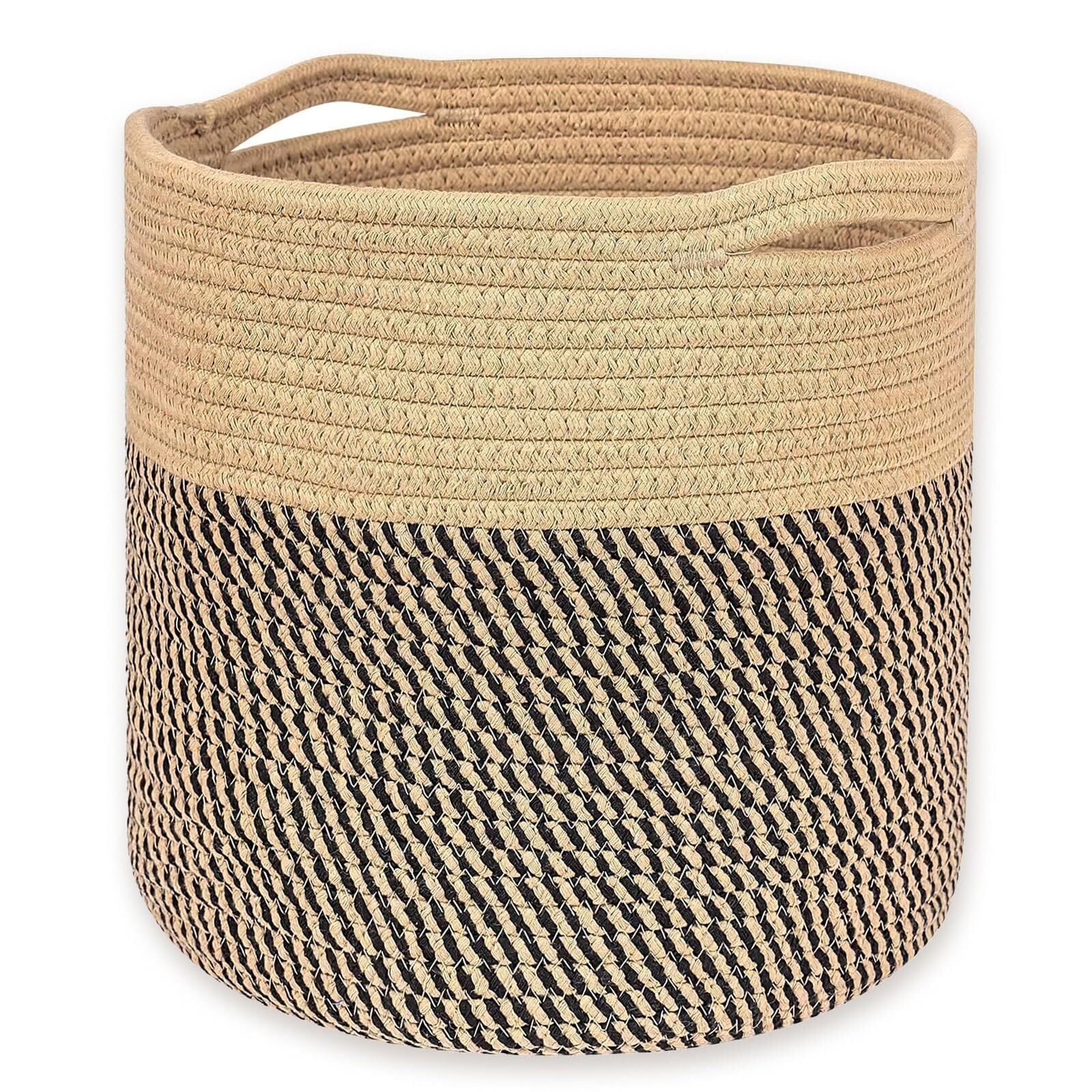 【限定セール】鉢カバー プランターカバー 観葉植物(28×26cm)鉢収納可能 コットンロープ シンプル インテリア 収納 かご 綿 ロープ インテリア ポット 植木鉢 屋内(薄いカレー色)