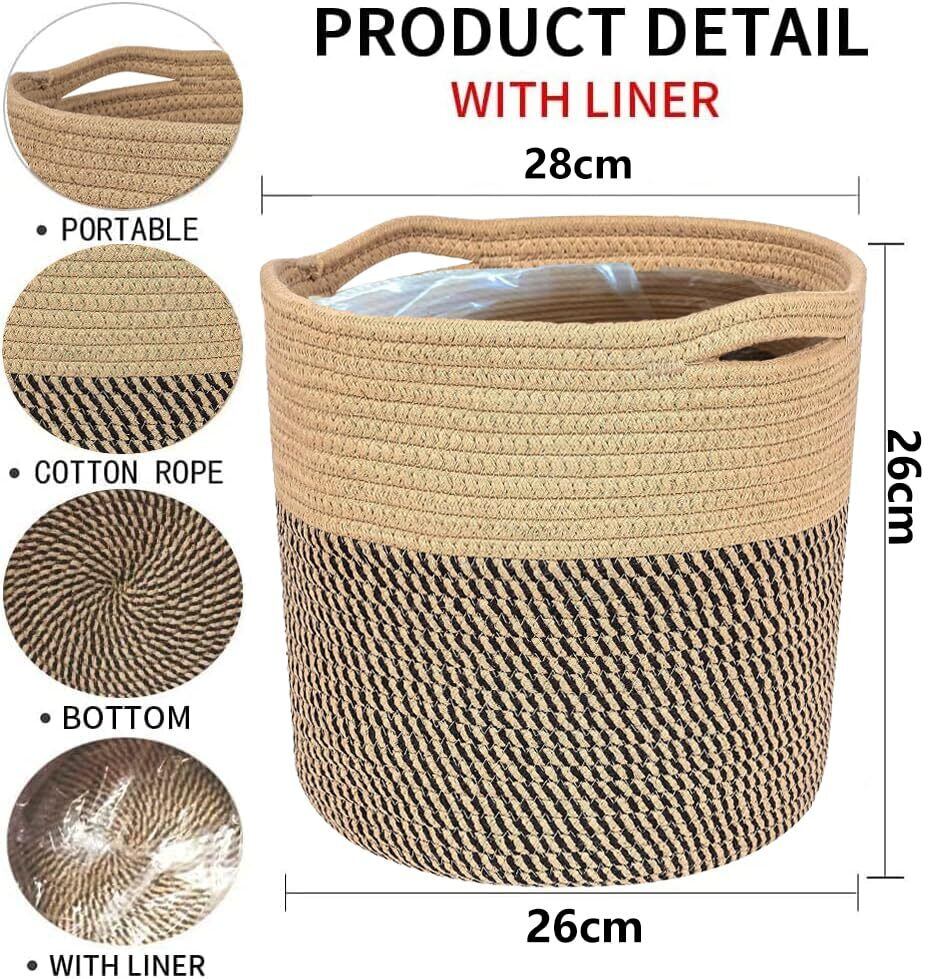 鉢カバー プランターカバー 観葉植物(28×26cm)鉢収納可能 コットンロープ シンプル インテリア 収納 かご 綿 ロープ インテリア ポット 植木鉢 屋内(薄いカレー色)