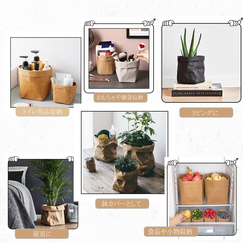 【特別価格】鉢カバー 植木鉢カバー 洗えるクラフト紙 観葉植物 プランターカバー おしゃれ 北欧 室内 シンプル インテリア 野菜果物収納 浴室用 旅行用 キッチン用 (XL (9号鉢相当), グレー)