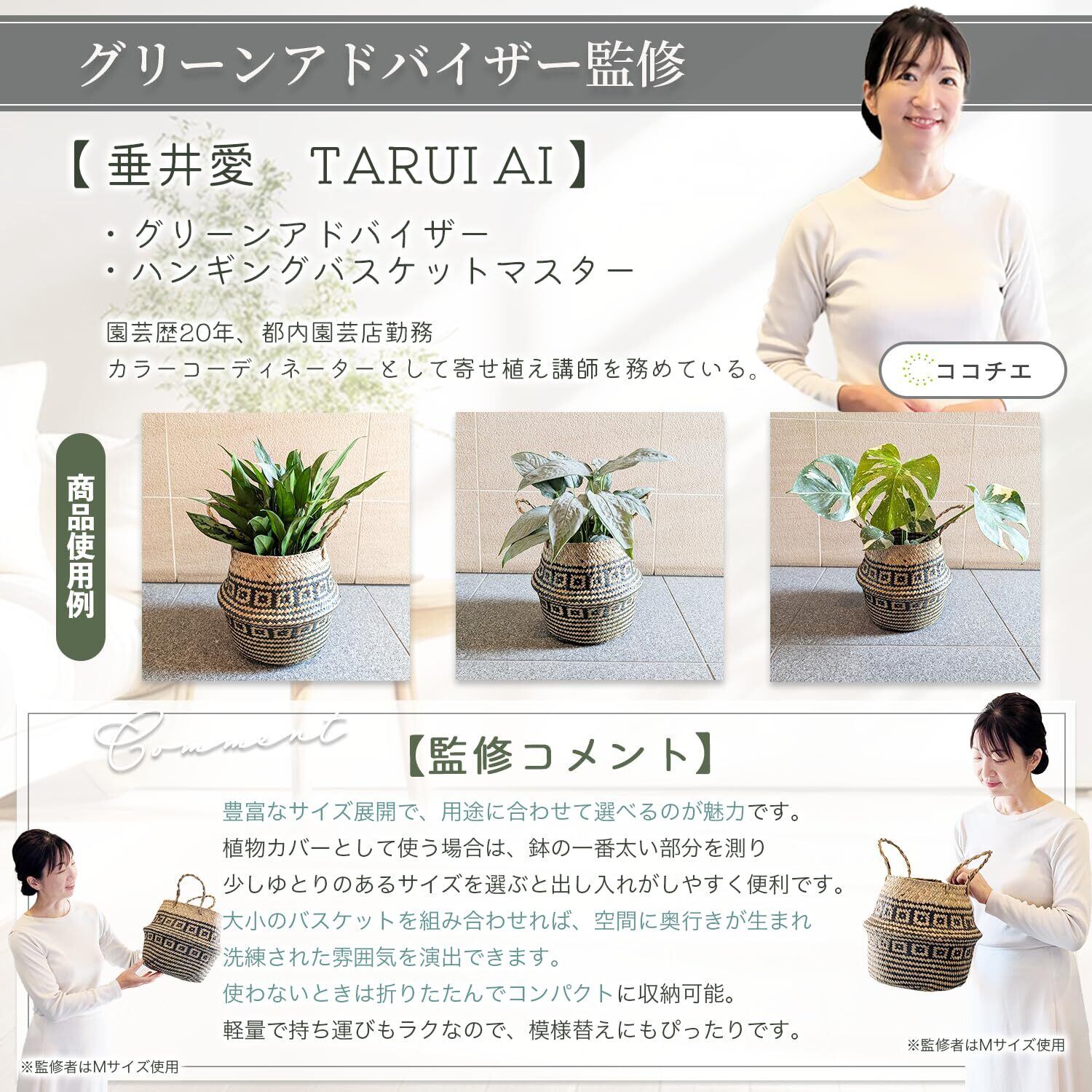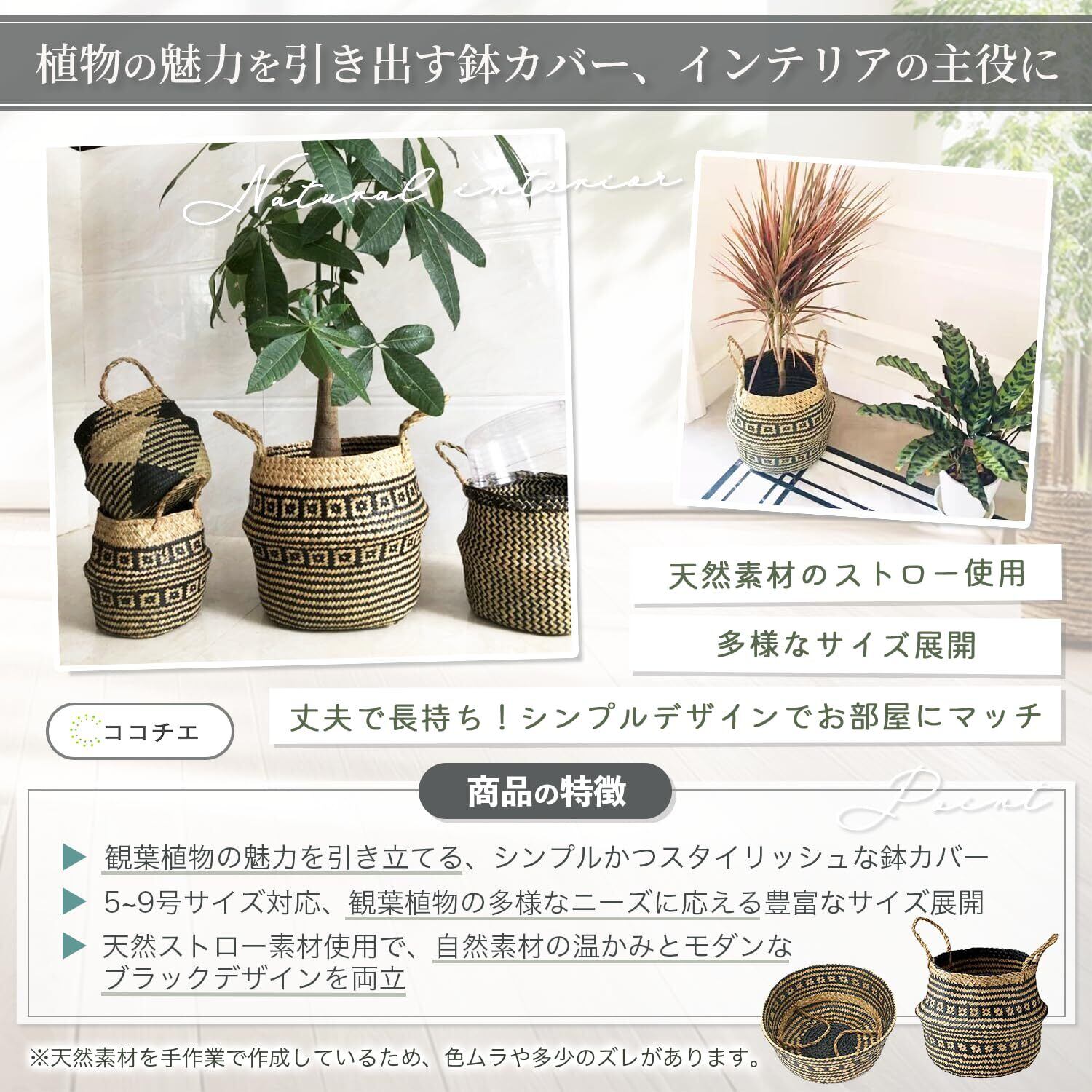 【新着商品】[ココチエ] 鉢カバー おしゃれ 5号 6号 7号 8号 9号 バスケット 収納 かご 折りたたみ ポット ストローバスケット 柄 ブラック (M)