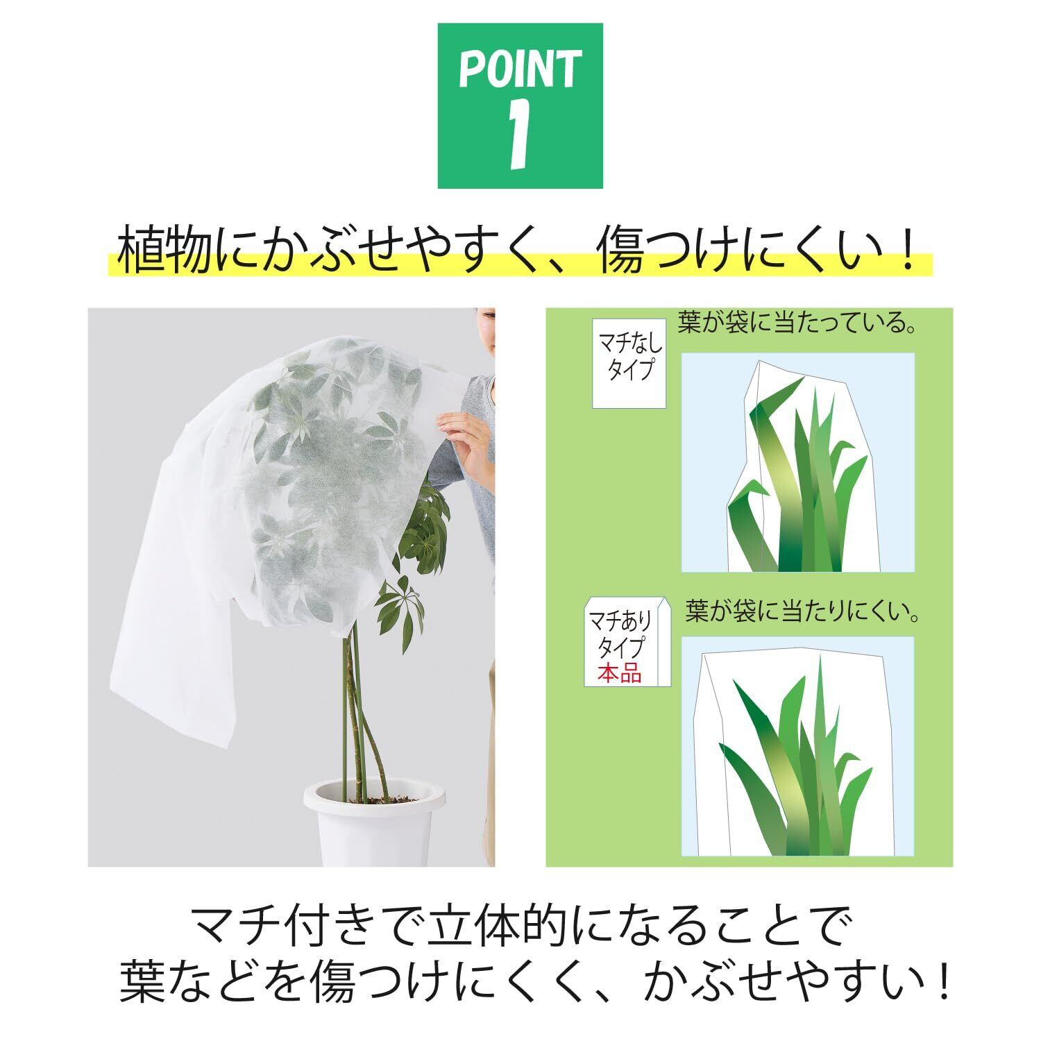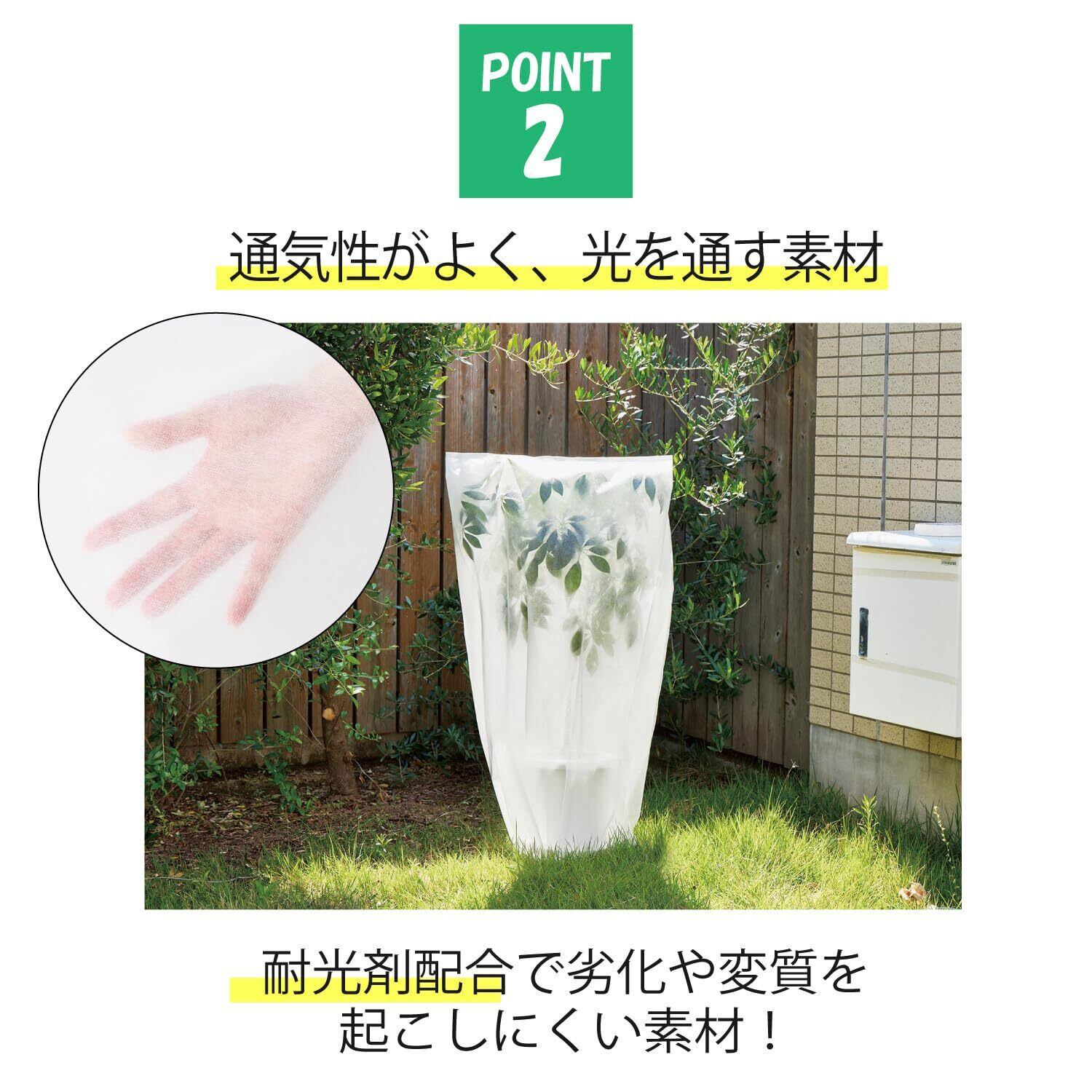 【注意事項】 ●本品は園芸用のカバーです。●押さえ具や重りなどで裾をしっかり固定してご使用ください。●植物のサイズに応じて本品の裾をカットしてご使用ください。●植物の成長を考慮してご使用ください。●本品を強く引っ張ったり、鋭利なものでひっかけないでください。破れる恐れがあります。●本品は虫などを完全に防ぐものではありません。●使用状況・環境により効果は異なります。●お子さまが本品で遊ばないようご注意ください。●お子さまの手が届かないところに保管してください。●包装用の袋で遊ばないでください。窒息など思わぬ事故の原因となります。●本来の用途以外でのご使用はお控えください。●火気厳禁。