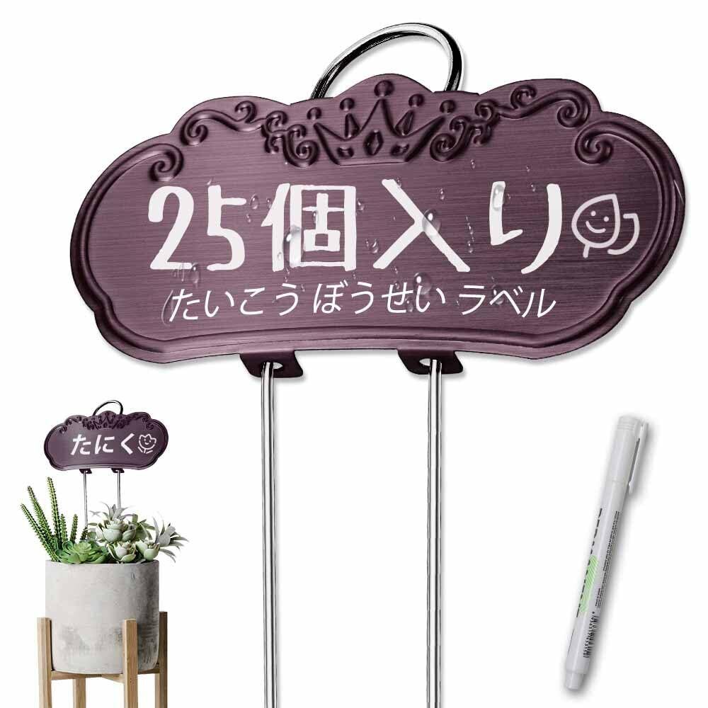 金属製植物ラベル、背の高い植物ラベル、庭のラベル 屋外 花、果物、野菜用、ステンレススチール、耐候性(25パック、4インチ x 1.9インチ、紫がかった赤)