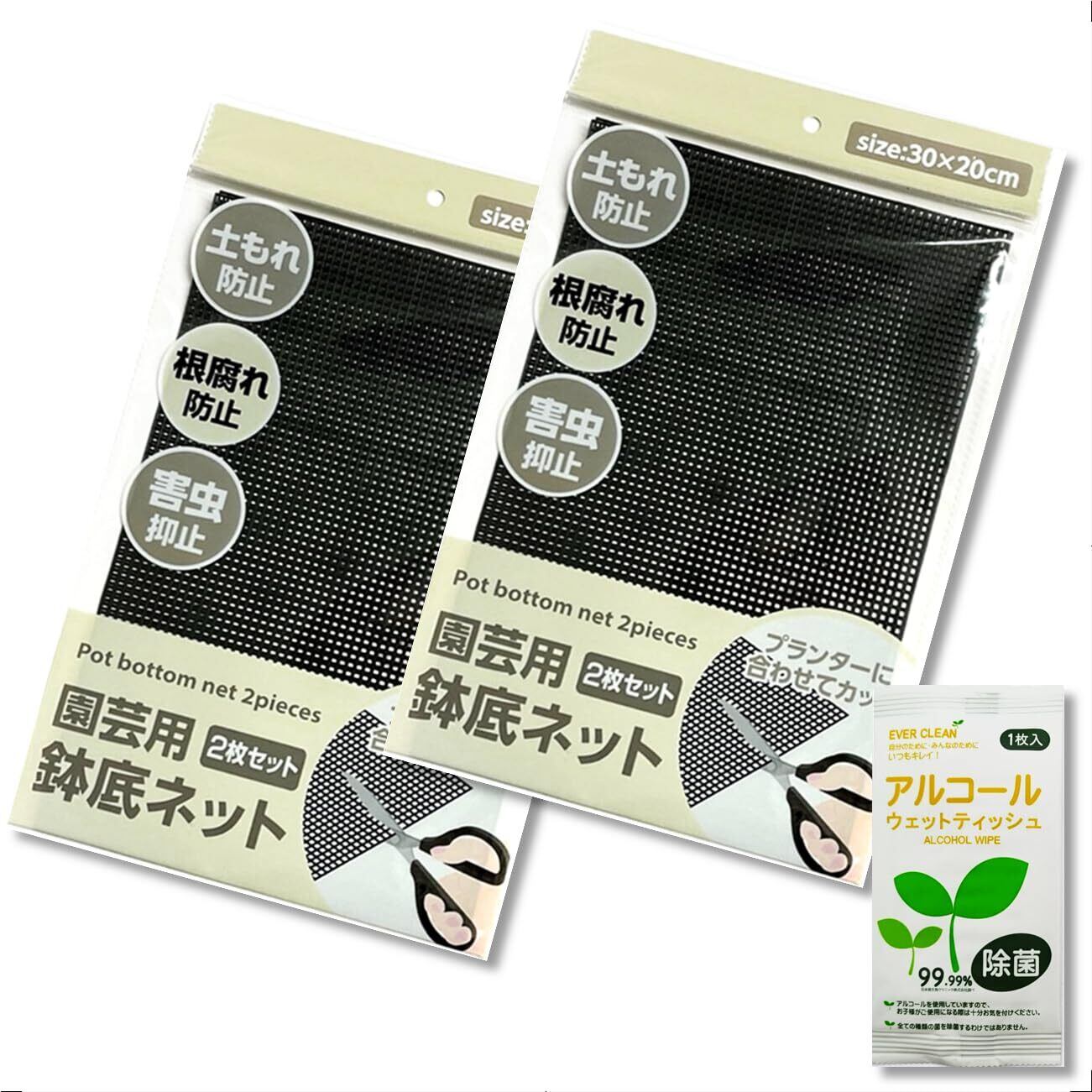 【数量限定】【4枚 セット】 園芸用 鉢底ネット プランターに合わせてカット / アルコールティッシュ1枚付き | 2枚入り×2個