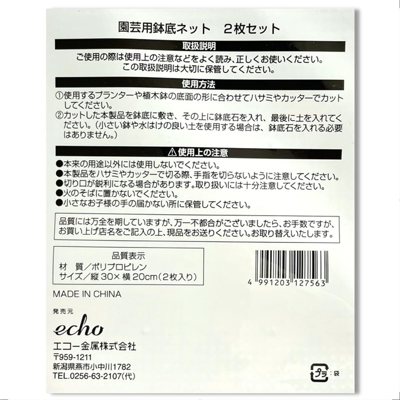 【4枚 セット】 園芸用 鉢底ネット プランターに合わせてカット / アルコールティッシュ1枚付き | 2枚入り×2個