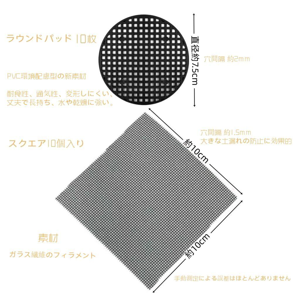 鉢底ネット 20枚セット 円形 メッシュ スクエア10*10cm 植木鉢ボトムネット メッシュ直径約7.5cm 排水網 通気性 土壌流出を防ぎます 腐食防止