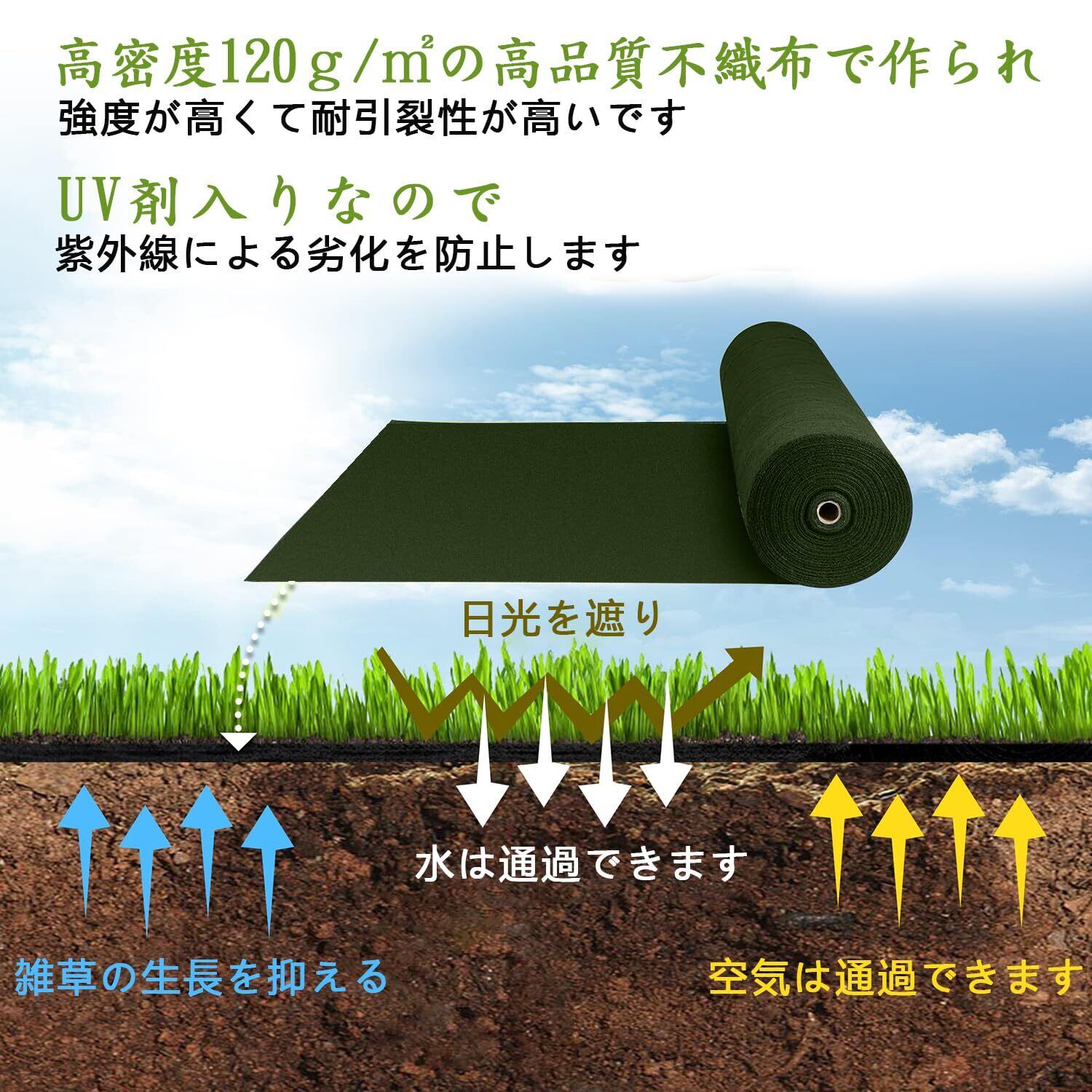防草シート 除草シート 2mx50m 高耐久 高密度120g/m² 親水剤入 高透水 紫外線劣化防止 不織布 雑草防止 雑草対策 除草 草取り 草よけ 砂利の沈下抑えシート 農業 園芸用 工事用 庭 通路など 雑草防止シート 固定ピン100本と黒丸100枚付属【幅2mを幅1mに折り畳んだ状態】