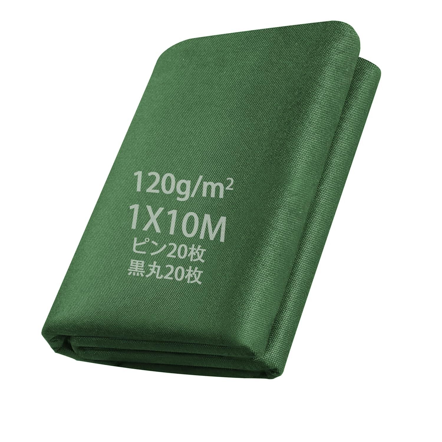 【改良版】防草シート 除草シート ぼうそうシート1m×10m Uピン杭20本と黒丸20枚付き 厚手 高密度120g/㎡ 高透水 親水化剤入 高耐久 UV耐候剤配合 園芸用 農業 工事用 庭 通路など雑草防止シート