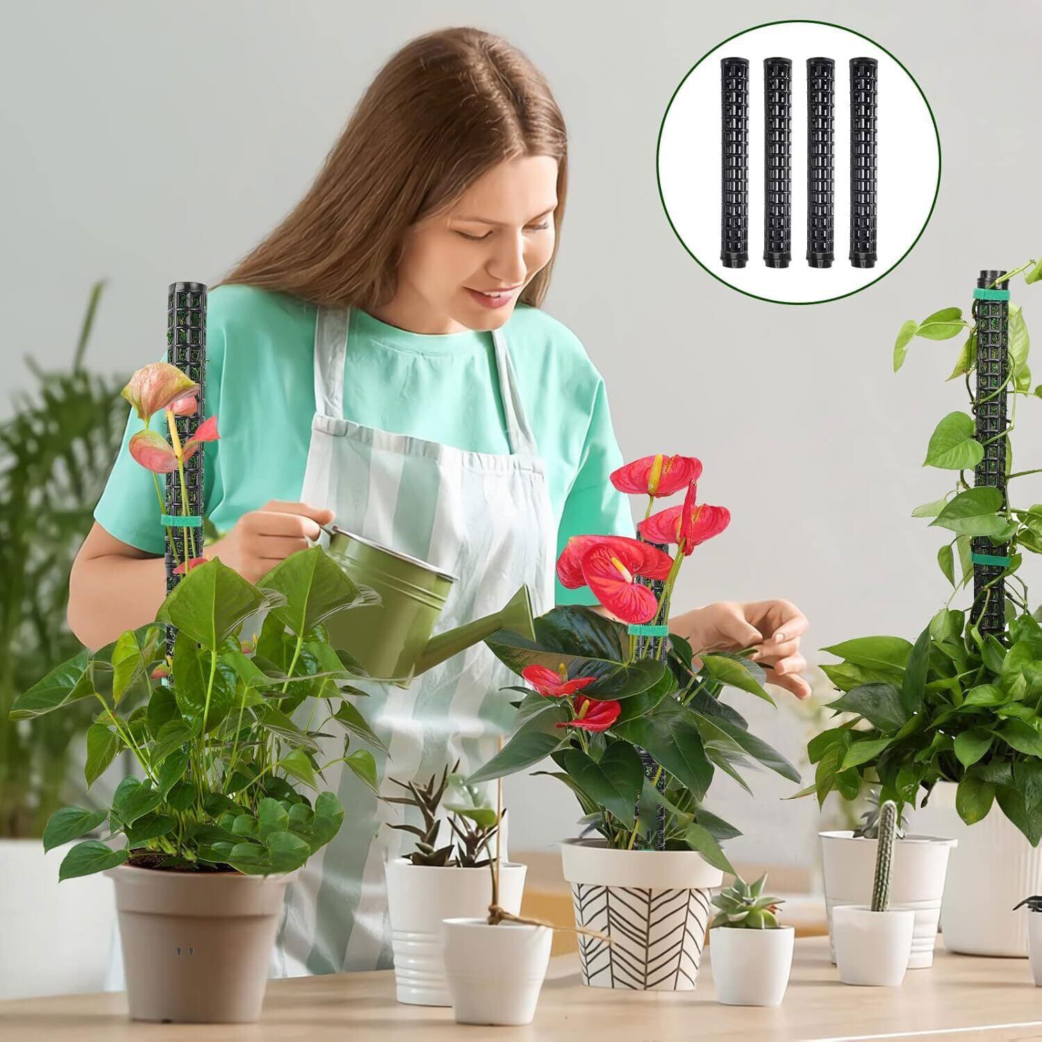 軽量かつ耐久性のあるプラスチック素材を使用し、観葉植物の成長に合わせて支柱を連結することができ、高さを調整できます。2本セットのため、複数の植物を同時にサポートすることも可能です。