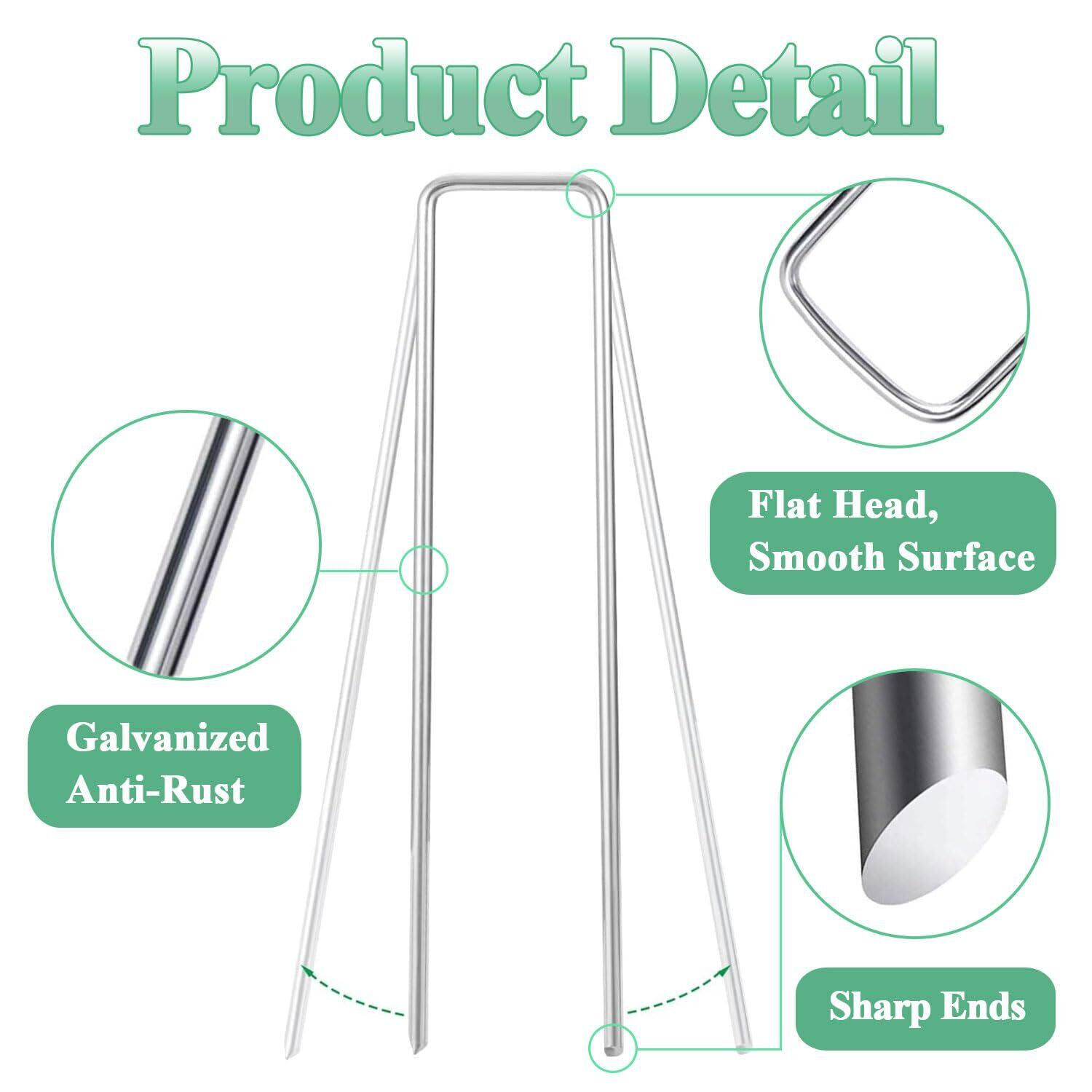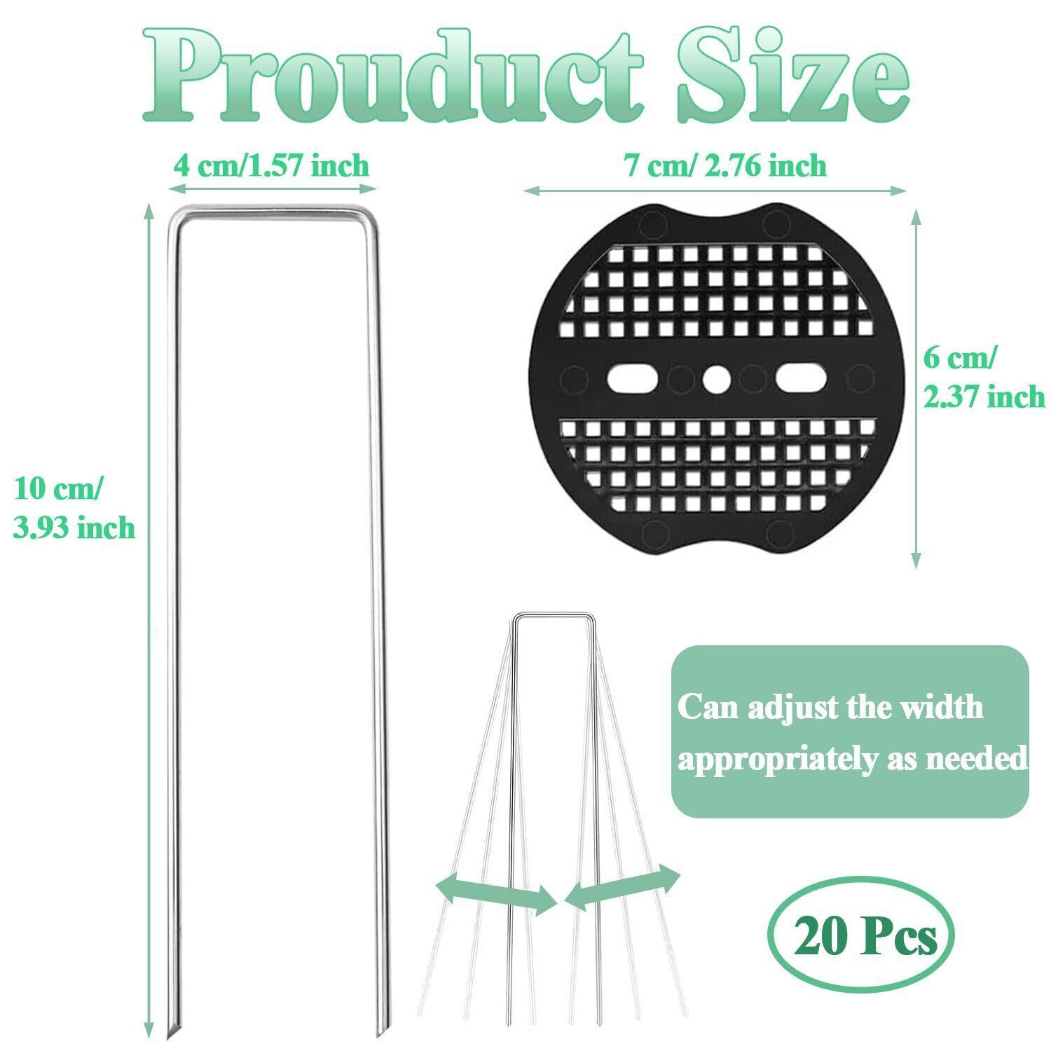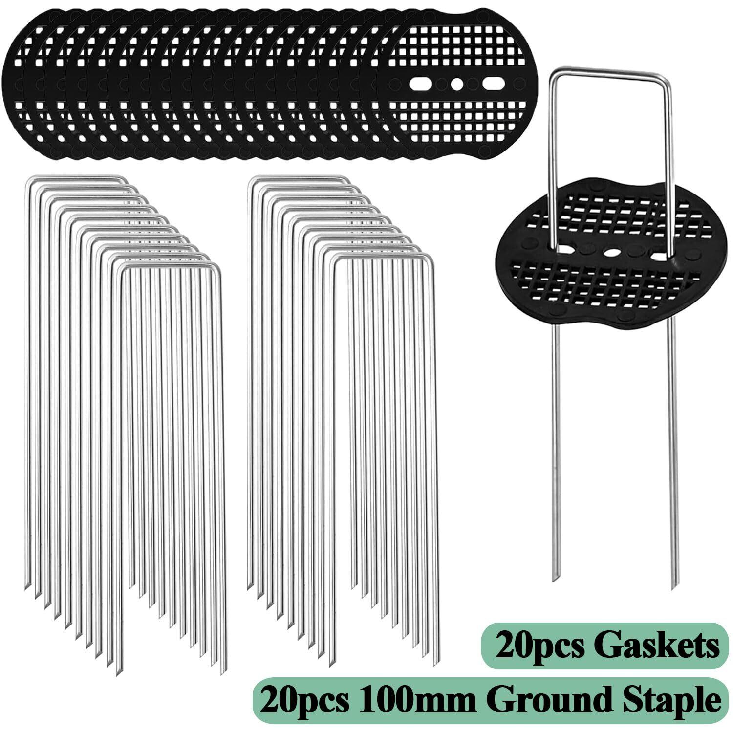 20 本セット U ピン杭, 100 mm x 40 mm シルバー 鋭利な先端 除草シート押さえピン, 錆防止亜鉛メッキスチール, 用途 家庭庭園 防草シート 防虫ネット 人工芝固定
