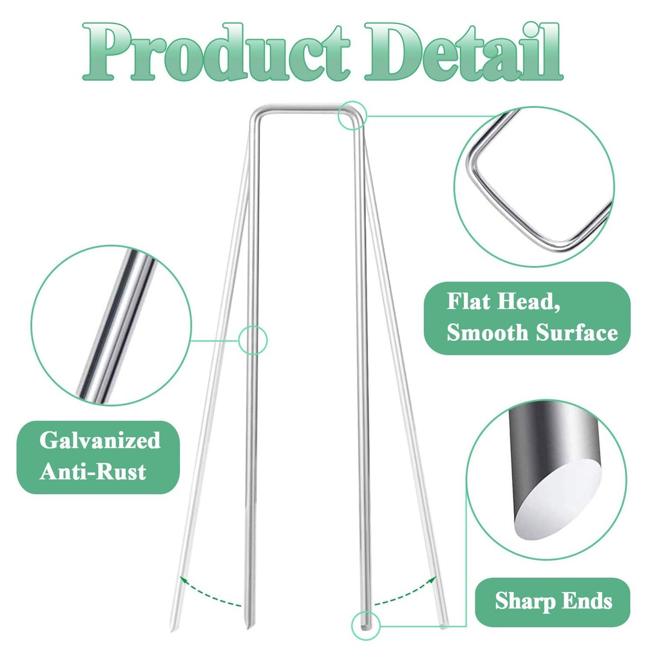 材質と製造方法:園芸用固定ピンは高品質の鋼材で作られており、高硬度、強力な耐圧性、そして曲がりにくい特性を備えています。溶融亜鉛メッキ処理により表面に厚い亜鉛コーティング層を形成することで、防錆性と耐腐食性を高め、耐用年数を延ばします