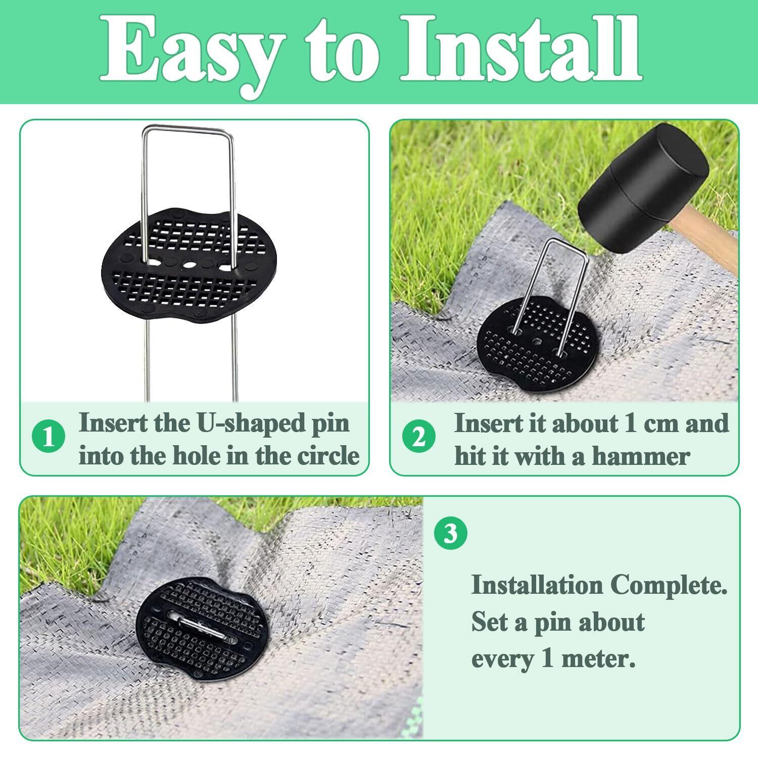 多用途:防草シート固定ピンは幅広く使用されており、庭、テラス、屋外など、多くのシーンで使用できます。例えば、人工芝、農業用フィルムグランドクロス、防草クロス、水道管、テントスタンド、屋外ケーブル、ペットフェンスの端の固定に使用できます