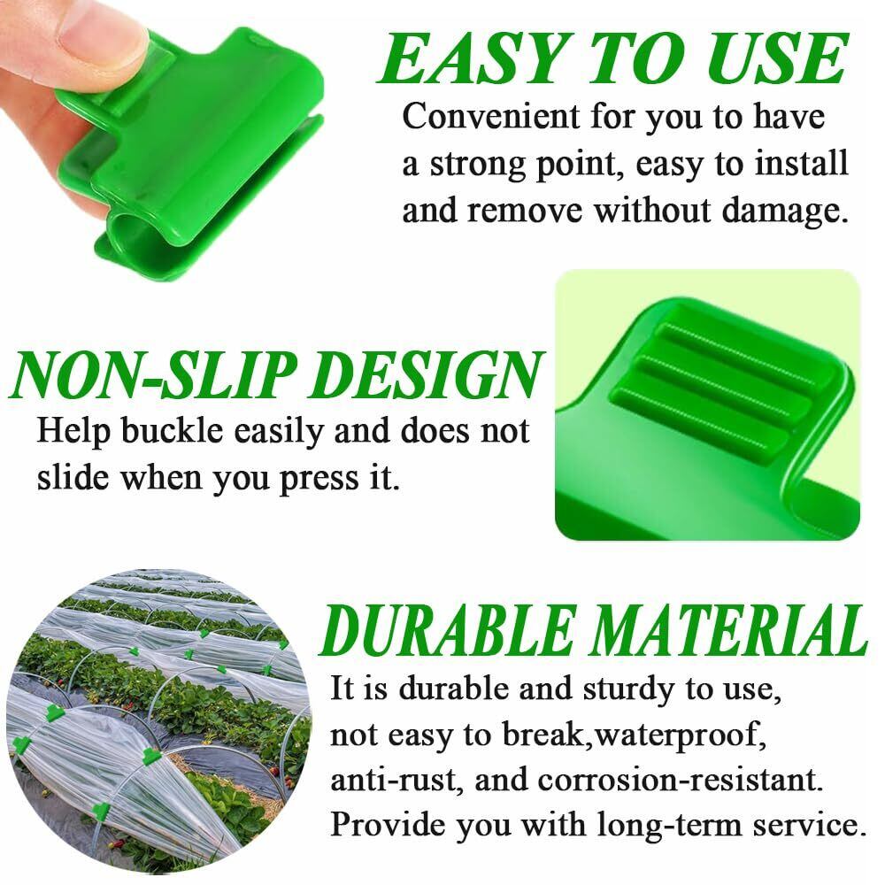 園芸用クリップは、防水布を取り付け、シェード、日除けをし、温室フィルムまたは網糸をパイプに固定するために使用することができる。また、必要に応じて温室や床を作るのにも適しており、日常的に使える実用的なガーデニングアイテムです。