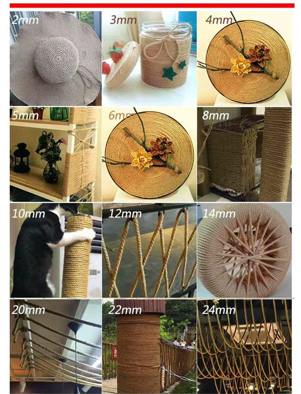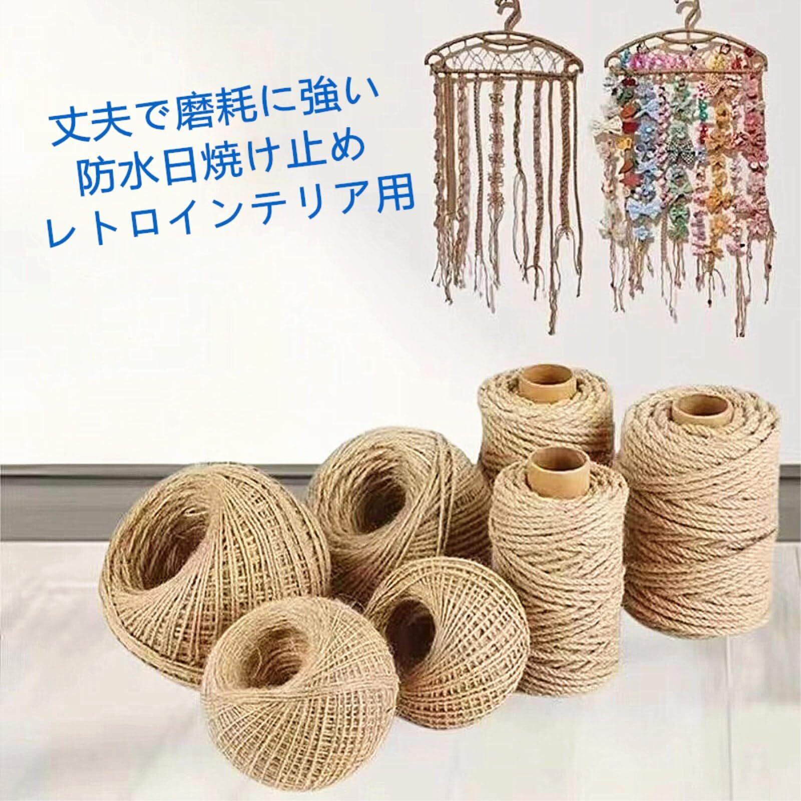 材質 :100%天然ジュート麻。サイズ:長さ:5M/10M/20M/30M/50M/100M;太さ:2mm/4mm/6mm/8mm/10mm/14mm/18mm/22mm/26mm/30mm;