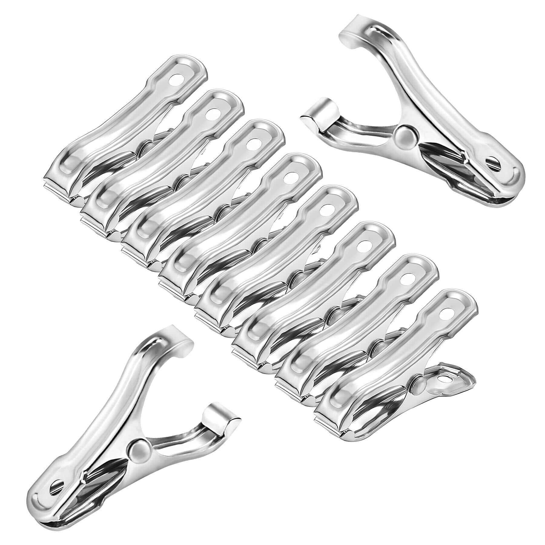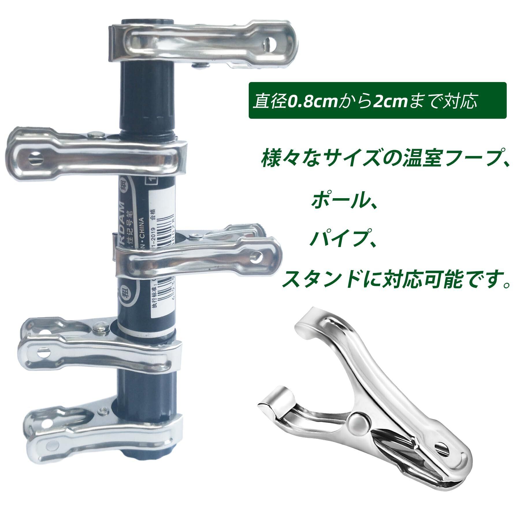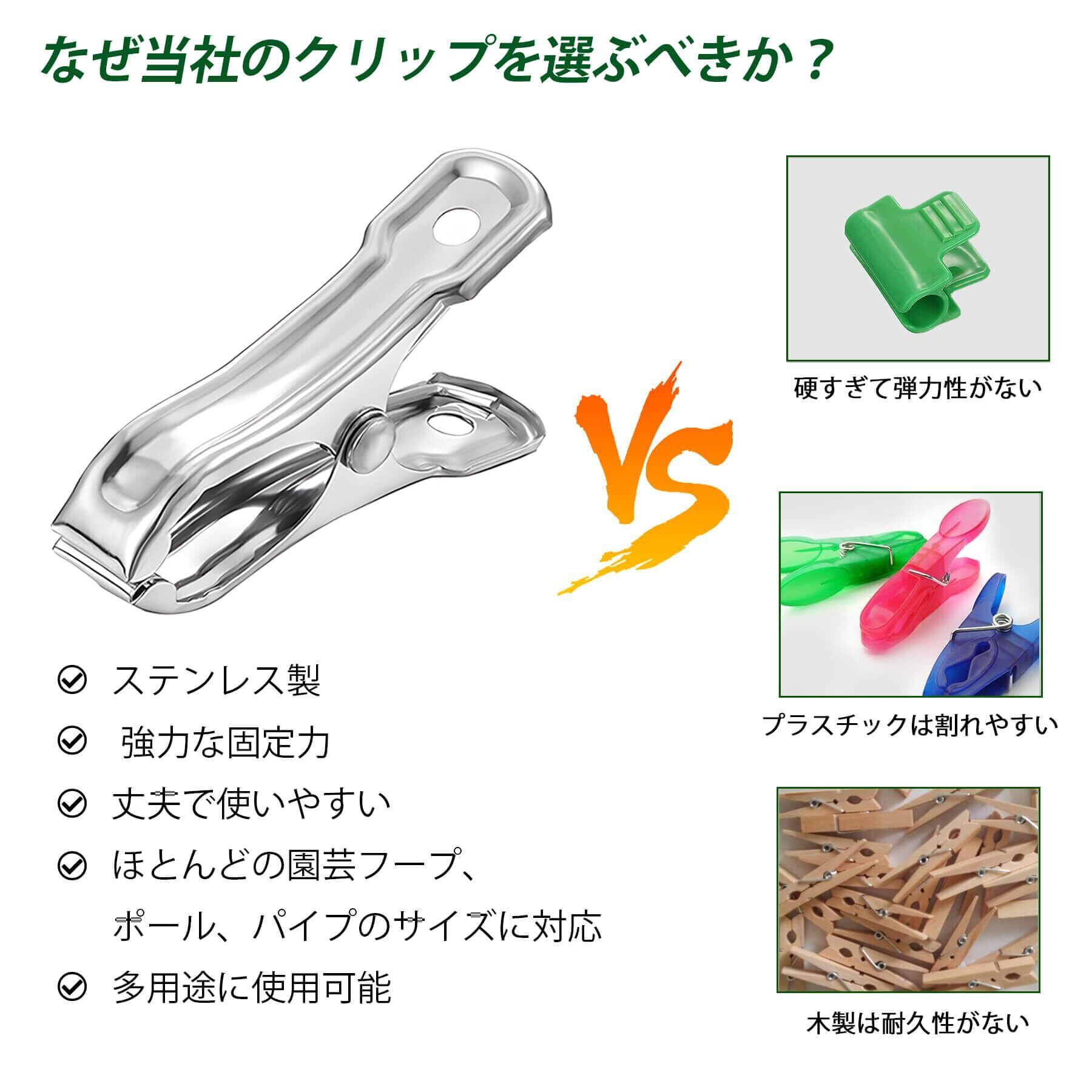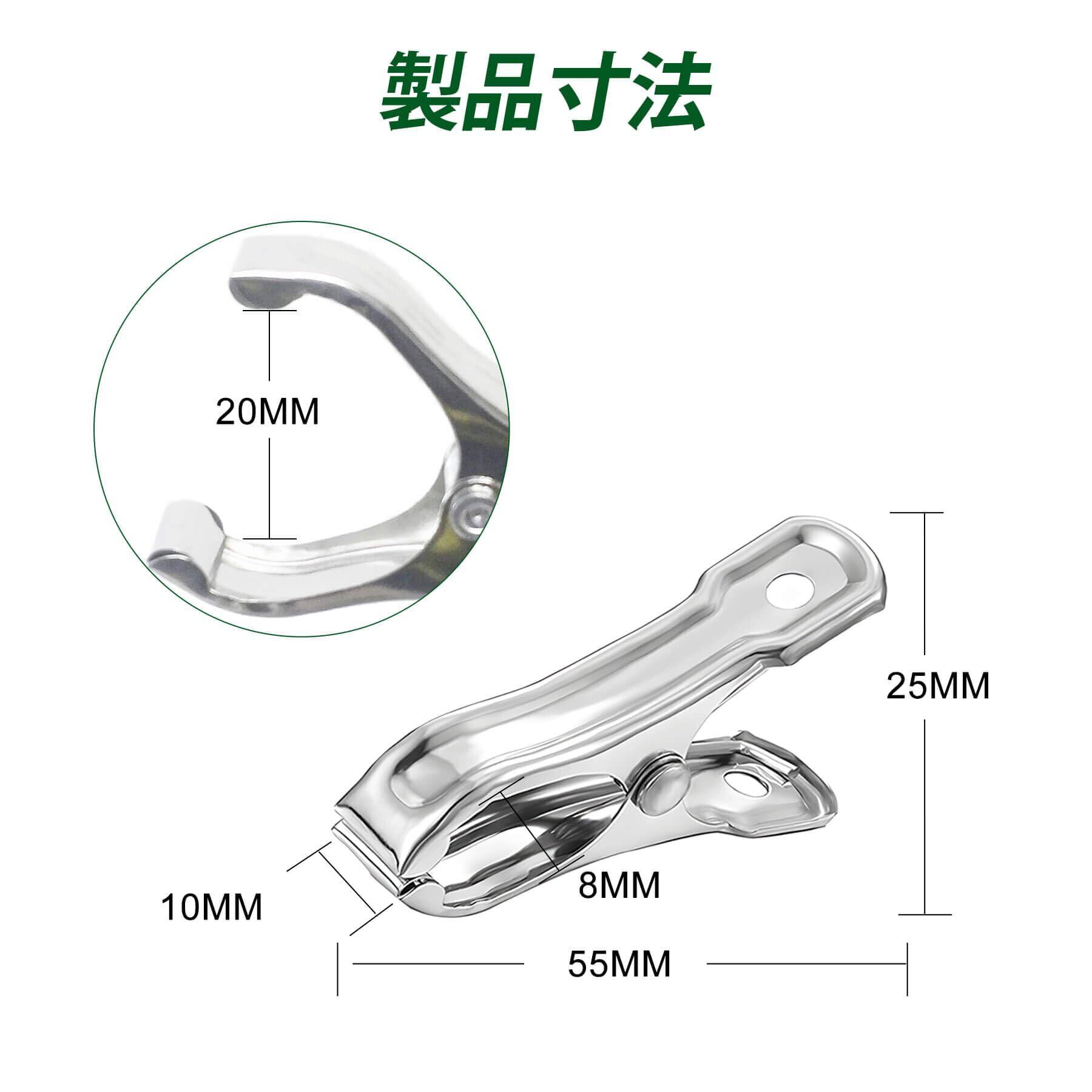 丈夫な素材: クリップ本体は丈夫なステンレス製。屋外での使用に適した耐久性があります。(注意:バネ部分は鉄製です)