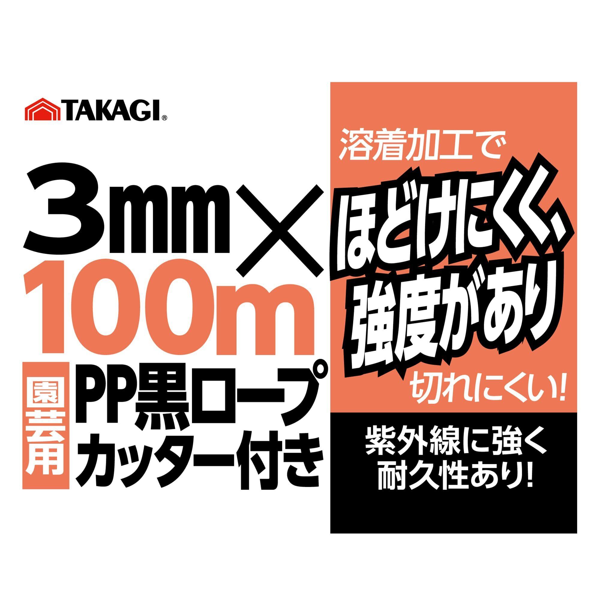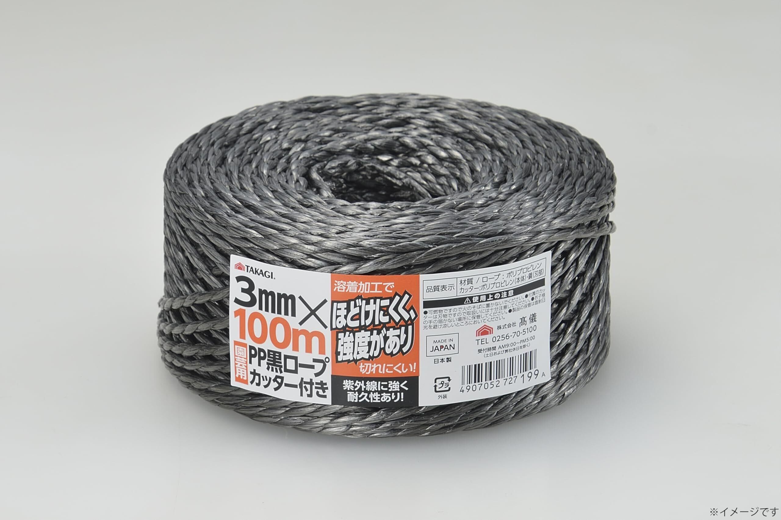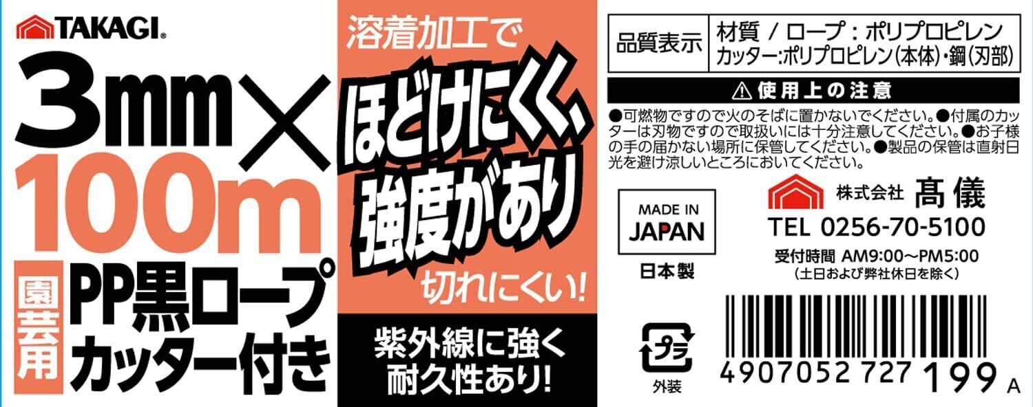 高儀 園芸用 黒 PPロープ カッター付 3mm×100m TAKAGI 日本製 支柱 結束 災害対策 溶着加工 ほどけにくい 強度 切れにくい 紫外線 強い 耐久性 紐 ポリプロピレン たかぎ