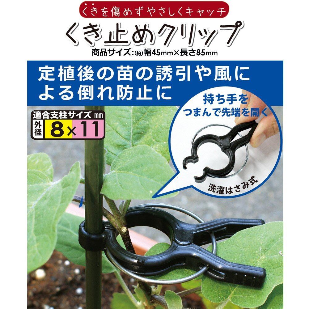 洗濯バサミ式で持ち手をつまみ、かんたんに支柱に設置出来ます。