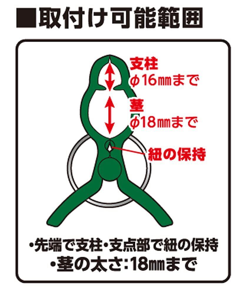 取り付け可能範囲:支柱φ16mm、茎φ18mmまで