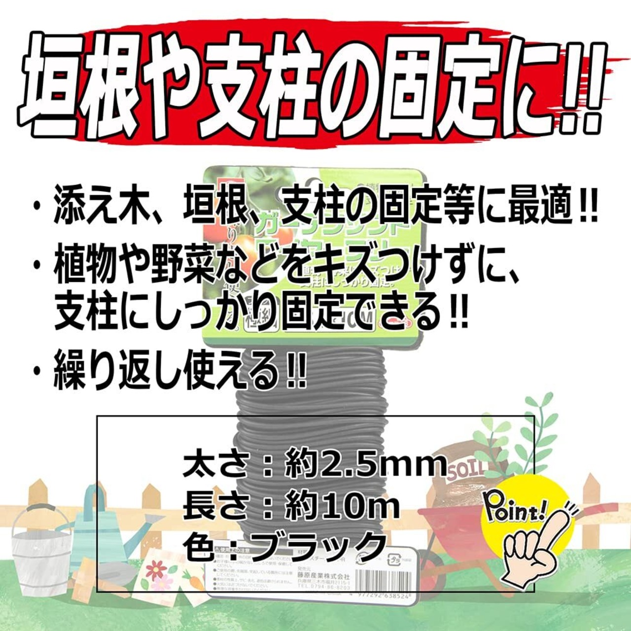 ・添え木・垣根・支柱の固定等に最適