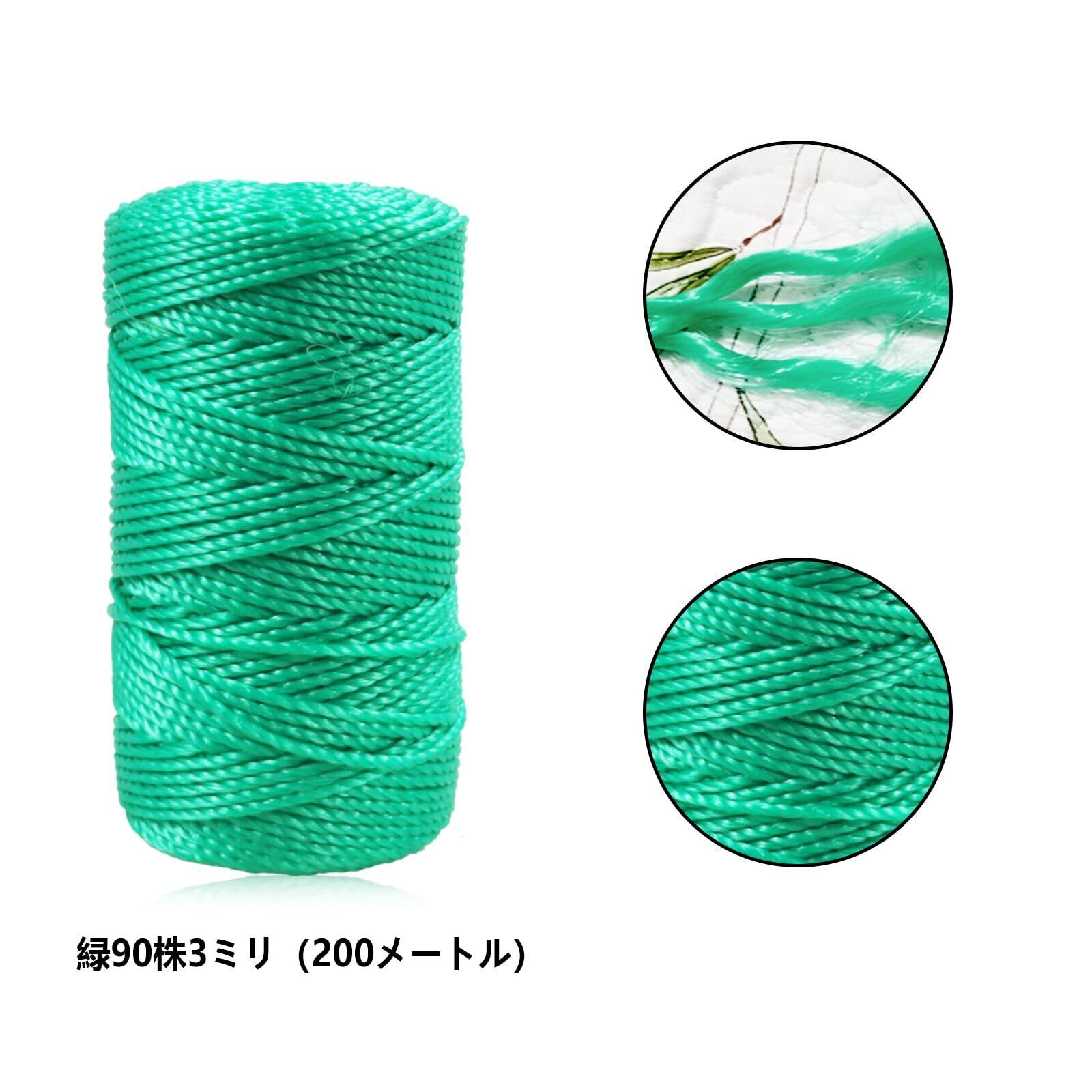 siawadeky 園芸用ロープ 園芸用紐 植物誘引 ロープ 長さ200M 太さ3mm 強力 高強度 耐久性 園芸支柱 ナイロン ロープ キュウリ スイカ トマト 野菜 果物 菜園 ハウス栽培 ガーデニング用品