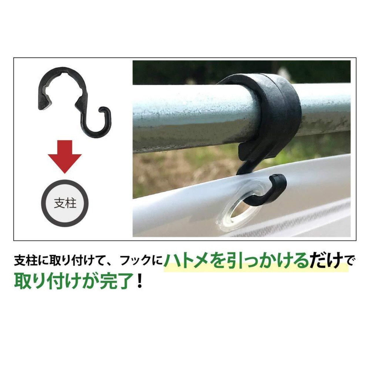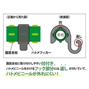 ■【特徴1】支柱に取り付け、フックに引っかけるだけでハトメビニールが取り付けられます。作業がより効率的に。