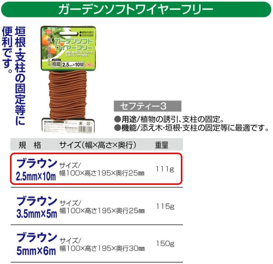 セフティー3(Safety-3) ガーデンソフトワイヤーフリー ブラウン 2.5mm×10m