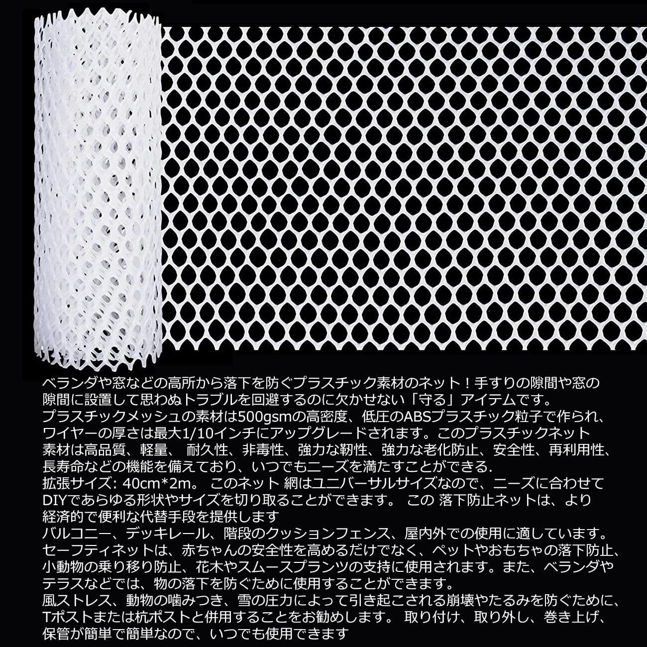 【限定セール】オーディオファン 転落防止ネット 防護フェンスネット 落下防止 脱走防止 プラスチック メッシュ 赤ちゃん 幼児 子供 犬 猫 ペット わん にゃん 安全 ベランダ 階段 窓 園芸 柵 フェンス diy 多目的 白 0.8cm穴 2m×40cm 1ロール