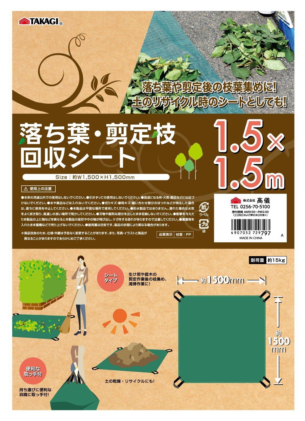 高儀(Takagi) TAKAGI 落ち葉・剪定枝回収シート 1.5×1.5m 四隅に取っ手付 耐荷重 約15kg【落ち葉や剪定後の枝葉集めに】【土のリサイクル時のシートに】【家庭菜園】たかぎ