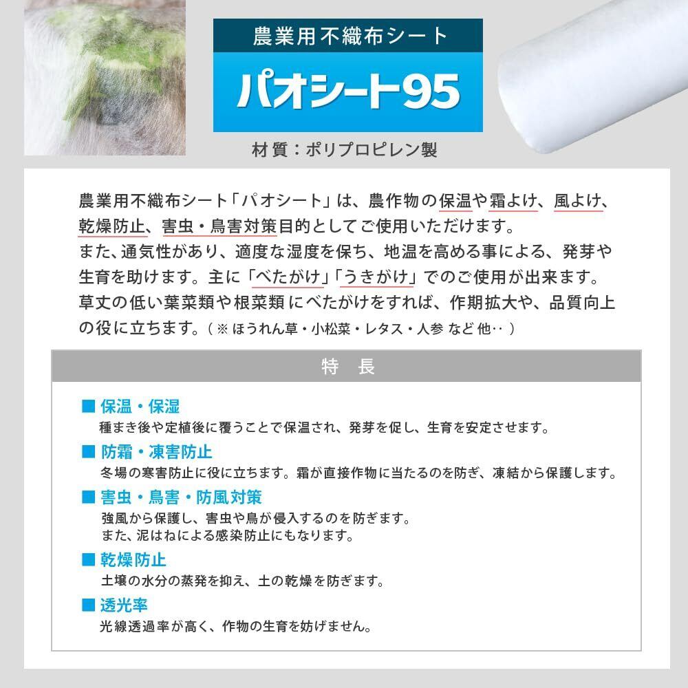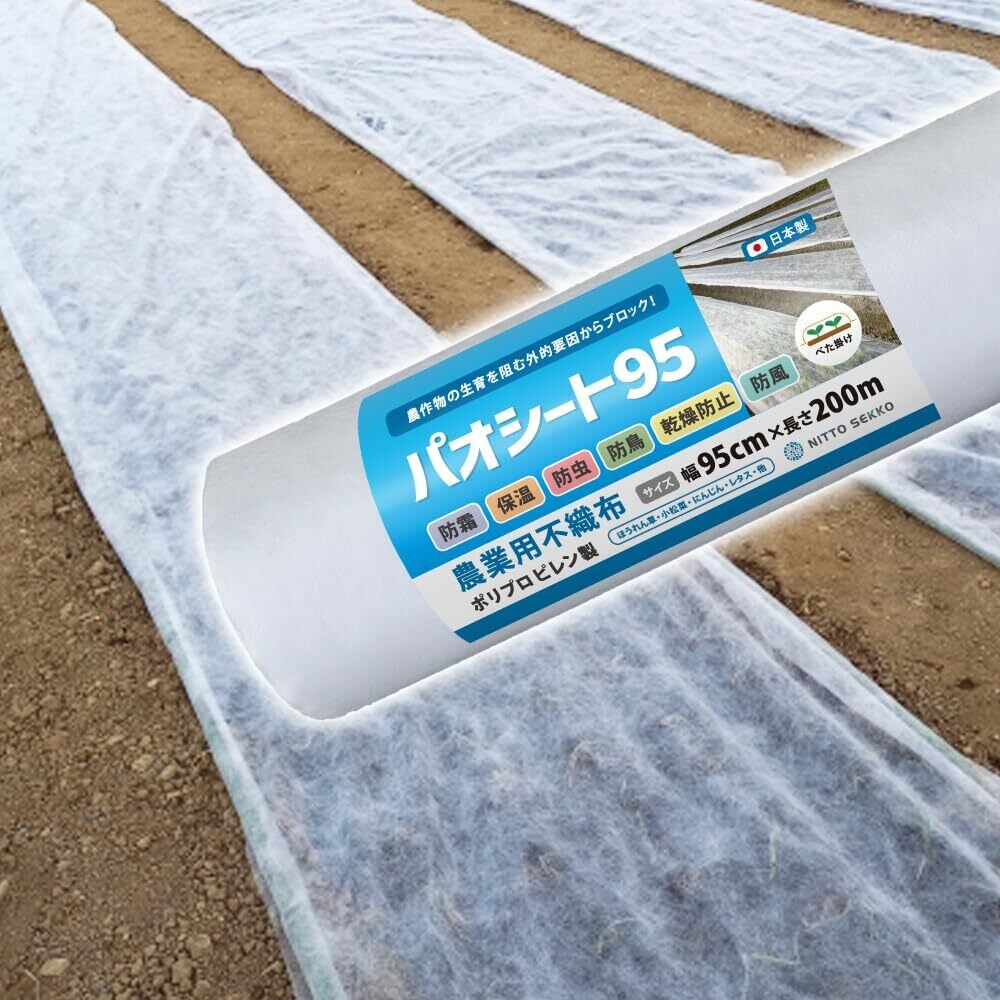 国産 日本製 不織布 農業用シート 育苗 栽培 園芸用 (パオシート 白 95cm×200m(ポリプロピレン製))