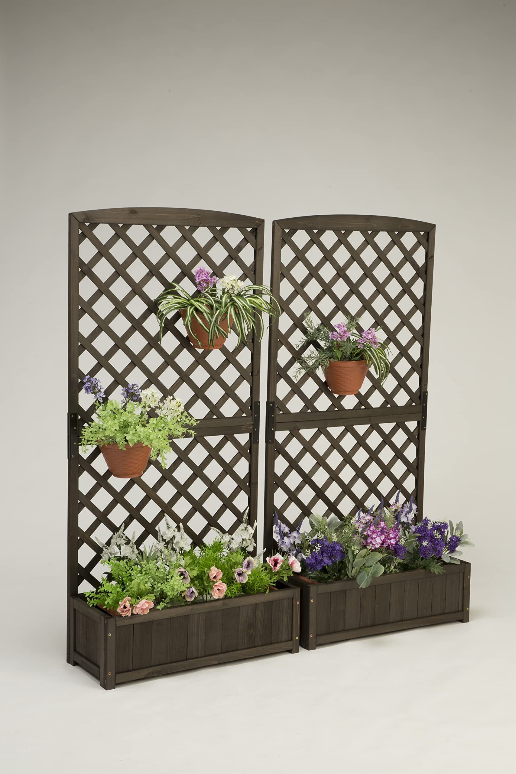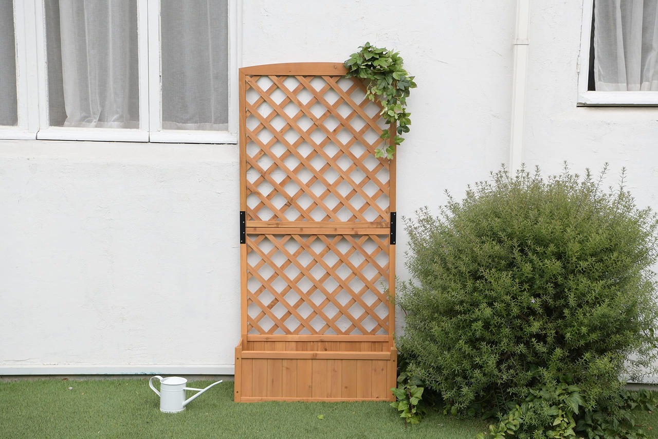 リビングアウト(Living Out) プランターラティス 木製 ダークブラウン 幅71.5×奥行30×高さ148cm プランター付きラティスフェンス 天然木使用 ガーデニング 鮮やかな色が映える 壁面緑化 目隠し