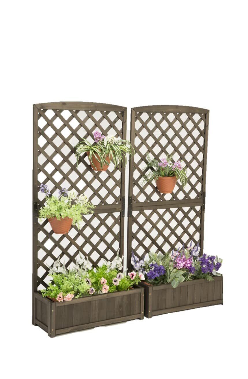 【2025最新】リビングアウト(Living Out) プランターラティス 木製 ダークブラウン 幅71.5×奥行30×高さ148cm プランター付きラティスフェンス 天然木使用 ガーデニング 鮮やかな色が映える 壁面緑化 目隠し
