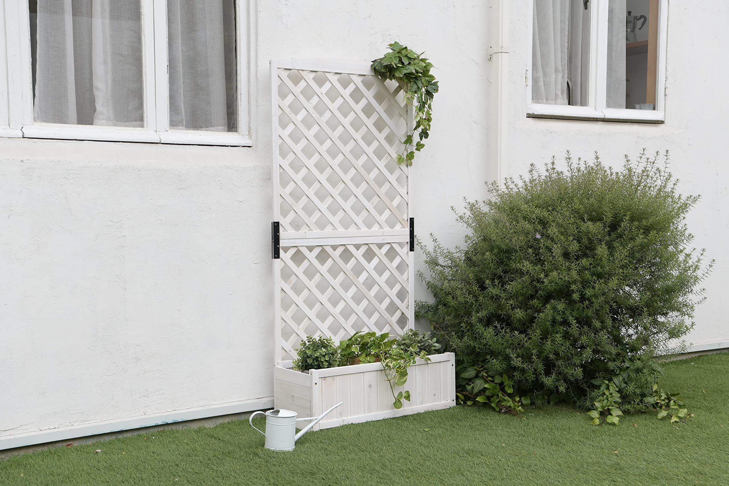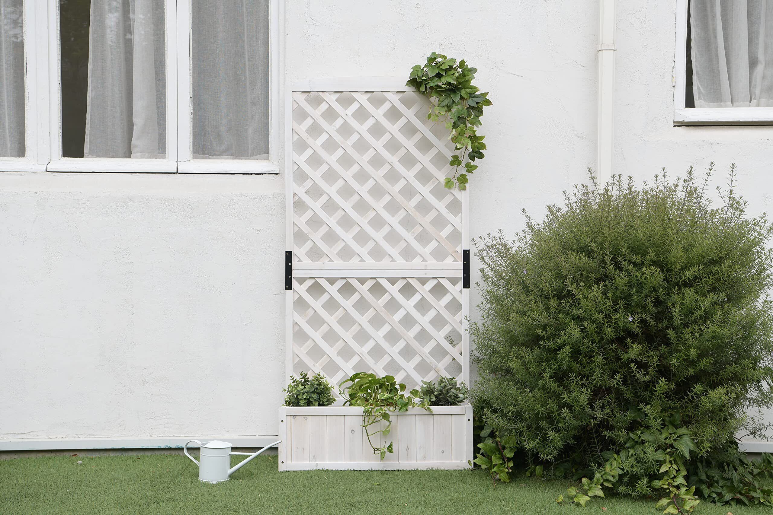 ●お家の玄関をオシャレに。鉄製のフェンスが付いたプランターラック壁面を緑化することで立体感のある安らぎ空間を演出でき、緑が見た目にも優しく、落ち着きます。