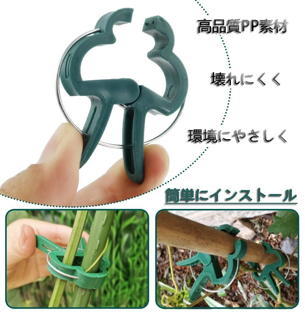 1.ガーデンクリップは金属スプリングと高品質PP材質で作られ。環境にやさしく、靭性が良く、老化防止、植物を損なうことができなく。緑色は葉の中でほとんど目立たず、自然に隠れるようにデザインされています。