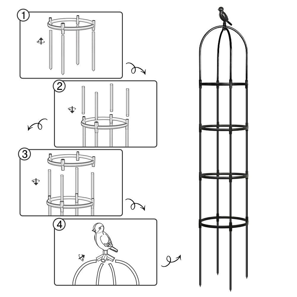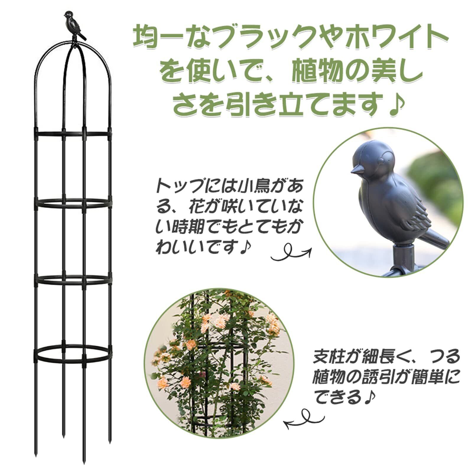 【見栄えが良い&省スペース】単一色で統一感もあって上品感もでます、また、オベリスクの上に鳥飾りがあります、とってもよいのガーデニング用品です。簡単に設置で、省スペースな空中栽培が可能、目指すのはイングリッシュガーデンだ!!