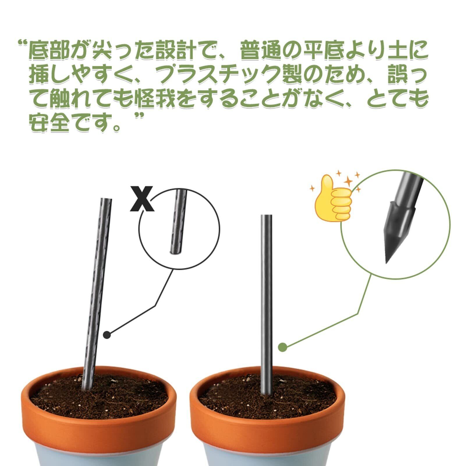【高品質&安全】プラスチックで覆われたステンレスのため、安定感があるで、錆びにくいで、永くご使用いただけます。中空なので、軽くて、下には底部が尖った設計で、普通の平底より土に挿しやすく、女性でも簡単にできます。プラスチック製の支柱ため、触れても怪我をすることがなく、とても安全です。
