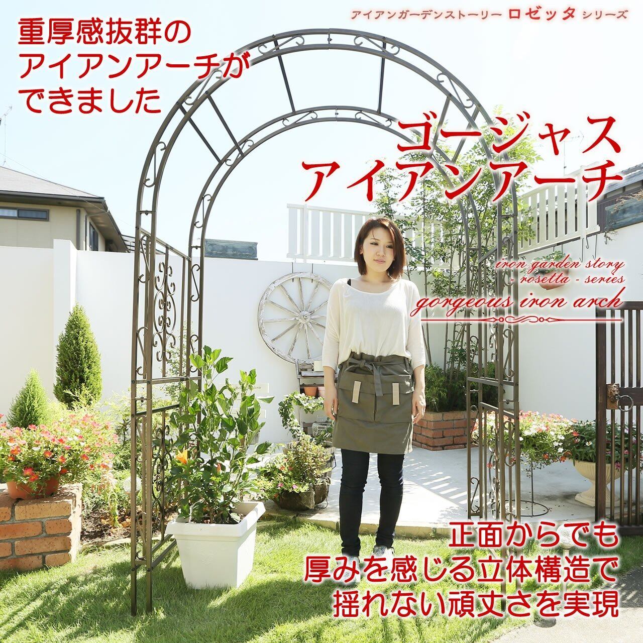 シリーズ一覧: IPN-7973-BRZ/IPN-7973-WHT ゴージャスアイアンアーチ、IPN-7974-BRZ/IPN-7974-WHT ゴージャスアイアンアーチ&ゲート、IPN-5416-BRZ/IPN-5416-WHT ゴージャスアイアンガゼボ、IPN-7955-BRZ/IPN-7955-WHT ゴージャスアイアンフェンス GAF-LOW980-BRZ/GAF-GATE3-BRZ/GAF-LOW980-WHT/GAF-GATE3-WHT ゴージャスローフェンス