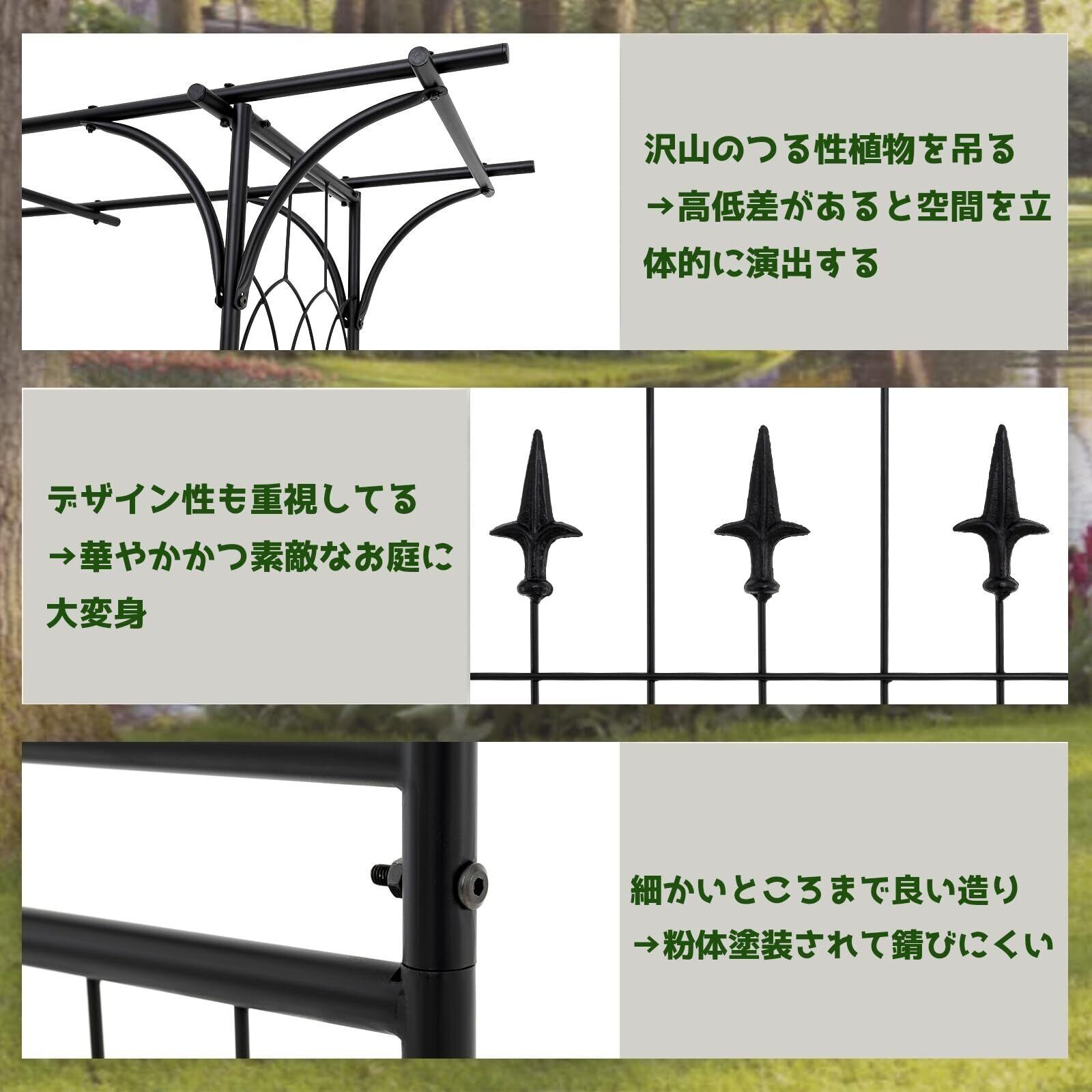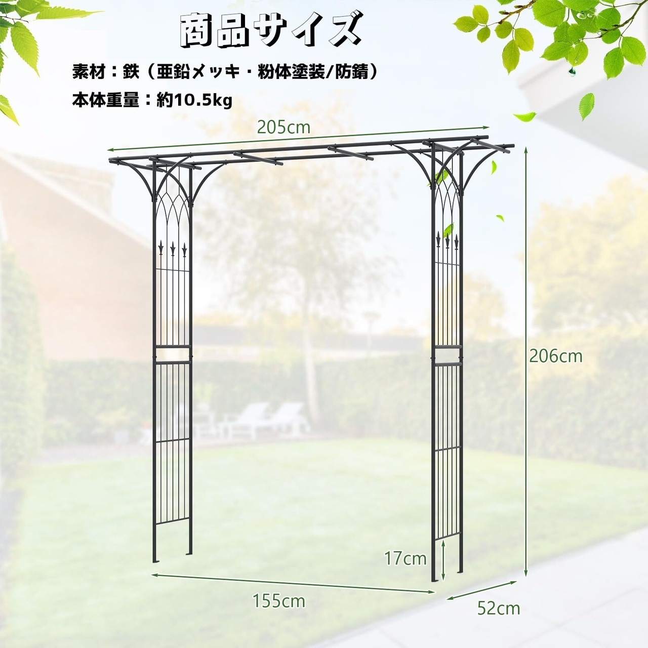 鉄製アーチ ローズアーチ ガーデンアーチ 幅155x奥行52x高さ206cm 錆びない ガーデニング バラ アーチ アイアン 薔薇アーチ 園芸用品 結婚式装飾