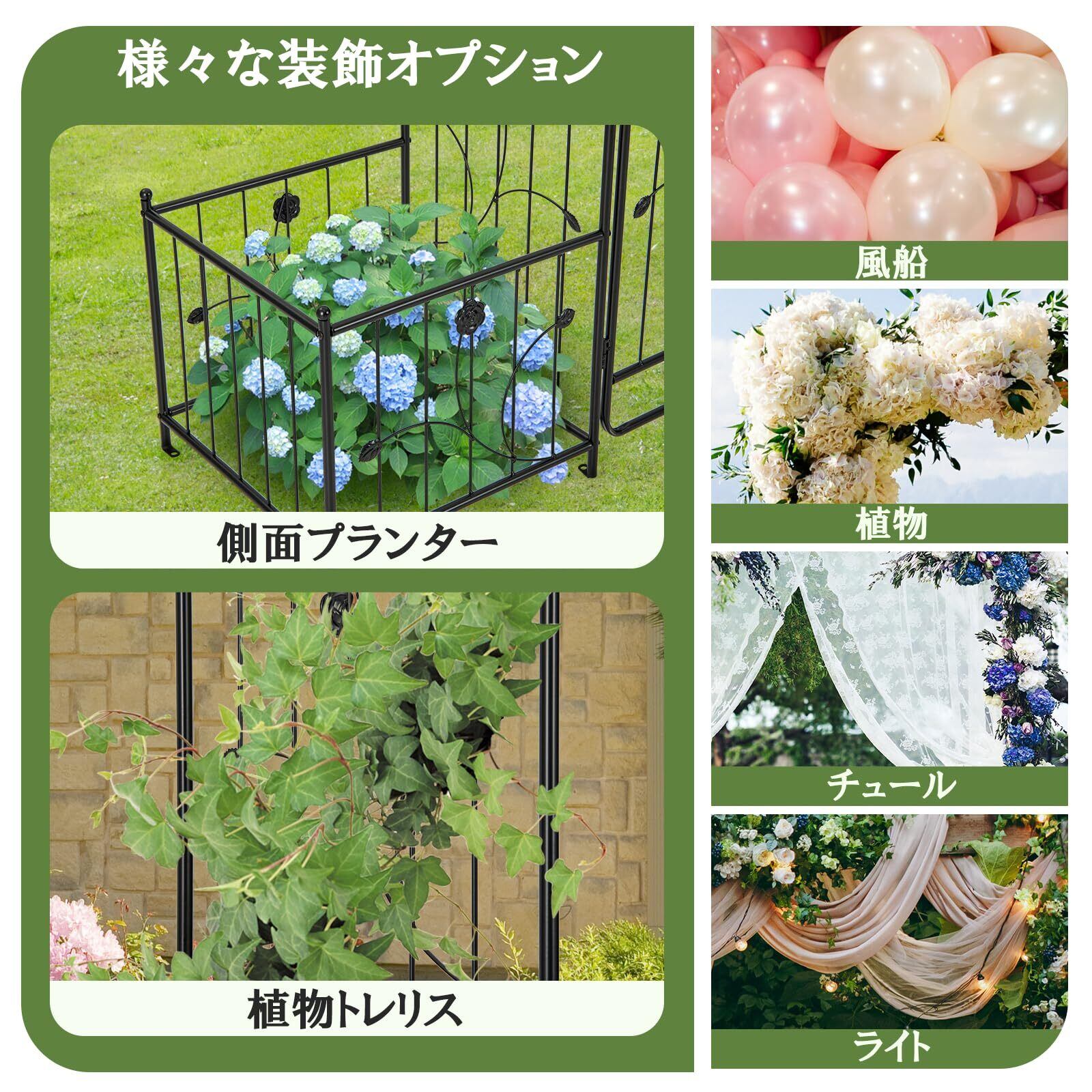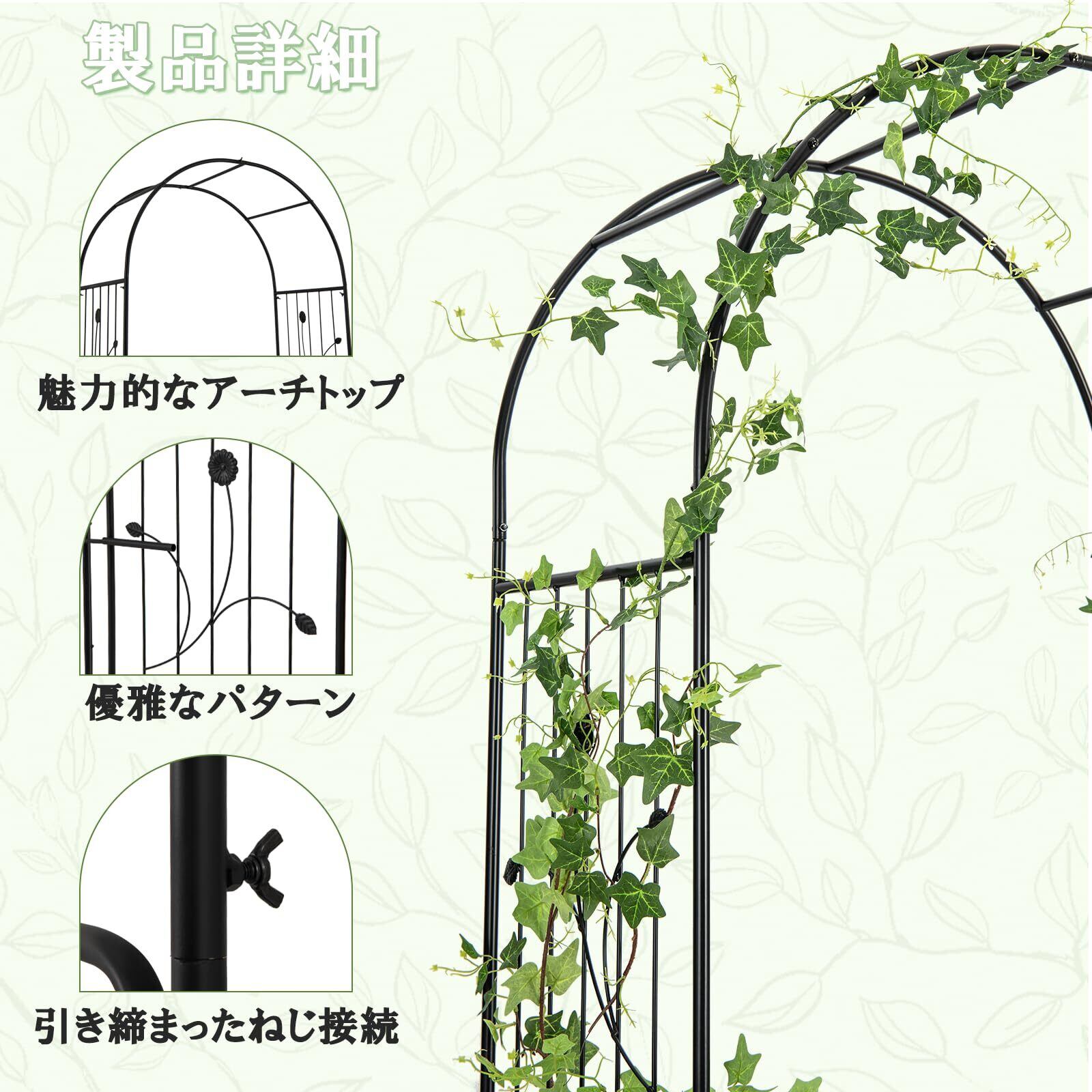 TANGKULA バラアーチ 鉄製アーチ 扉付き ガーデンアーチ 幅201cm 奥行50cm 高さ218cm アイアンアーチ 結婚式 園芸 菜園 パーゴラ バラ つる 耐候性 組み立てやすい 立体構造(マルチ)