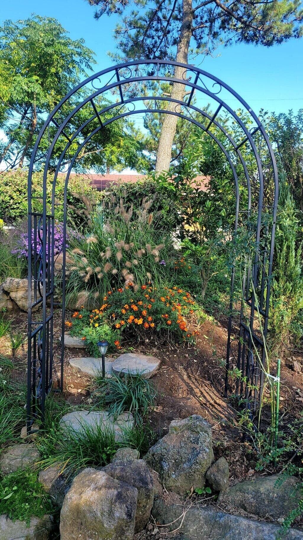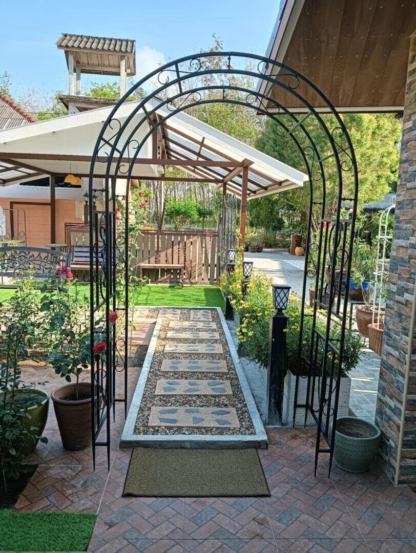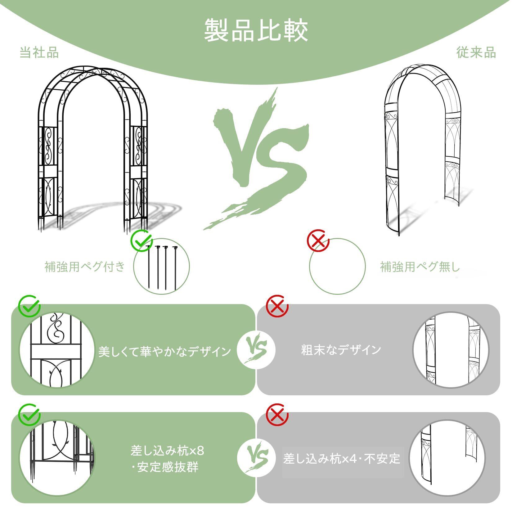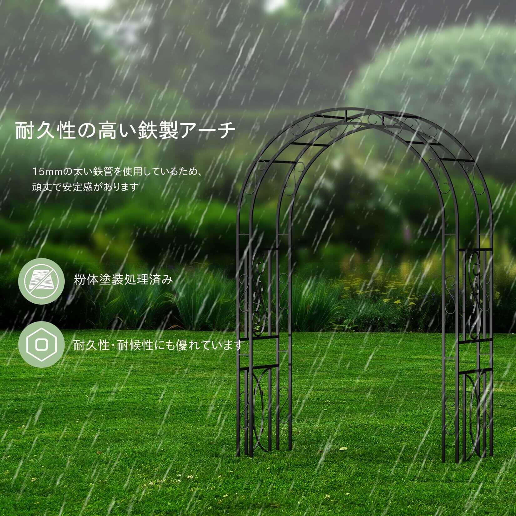 【耐久性の高い鉄製アーチ】15mmの太い鉄管を使用しているため、頑丈で安定感があります。黒色の粉体塗装の表面仕上げも施されており、さまざまな環境条件に耐えることができ、耐久性とデザイン性にも優れています