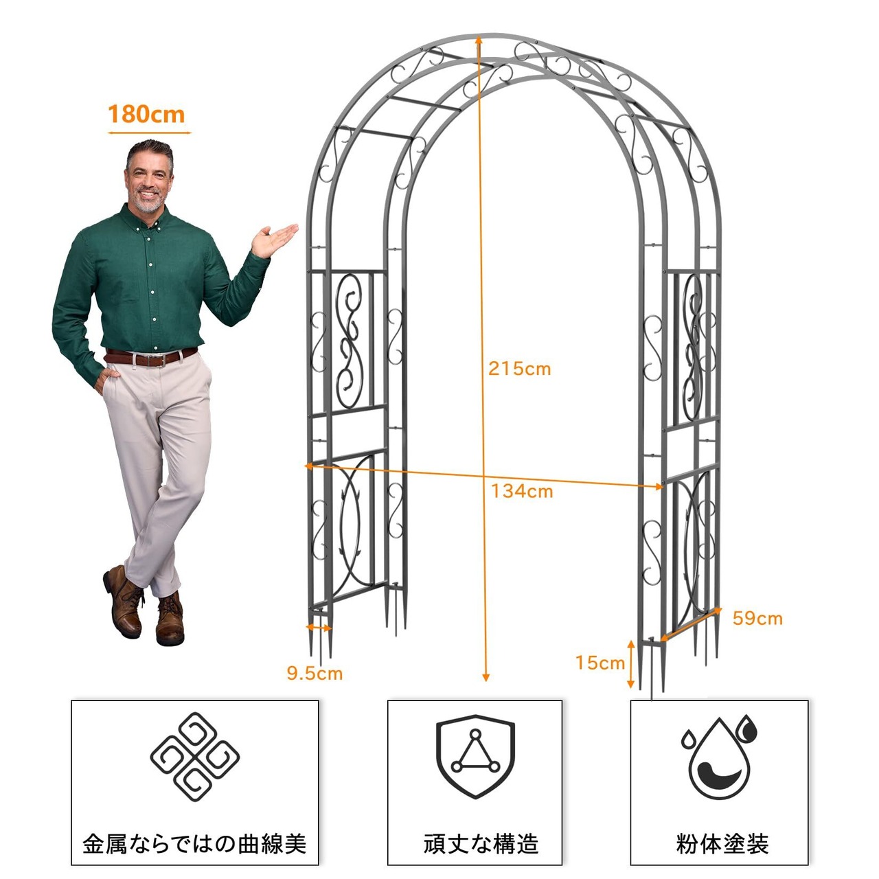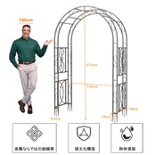 【使い勝手の良い大きなサイズ】高さ215cm×幅134cm×奥行き59cmの十分なサイズで、高さがあるため屈む必要がなく、使いやすいです。玄関のエントランス・アーチとして、またはお庭に設置してお気に入りの花や植物を絡めることで、美しいアーチの曲線を際立たせ、おしゃれな空間を演出できます