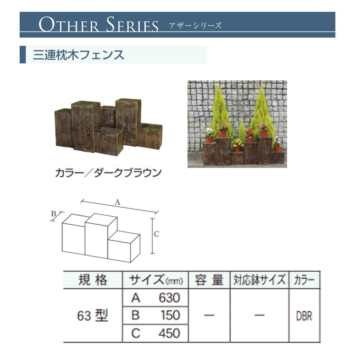 大和プラスチック 三連枕木フェンス 630×150×H450 63型 ダークブラウン