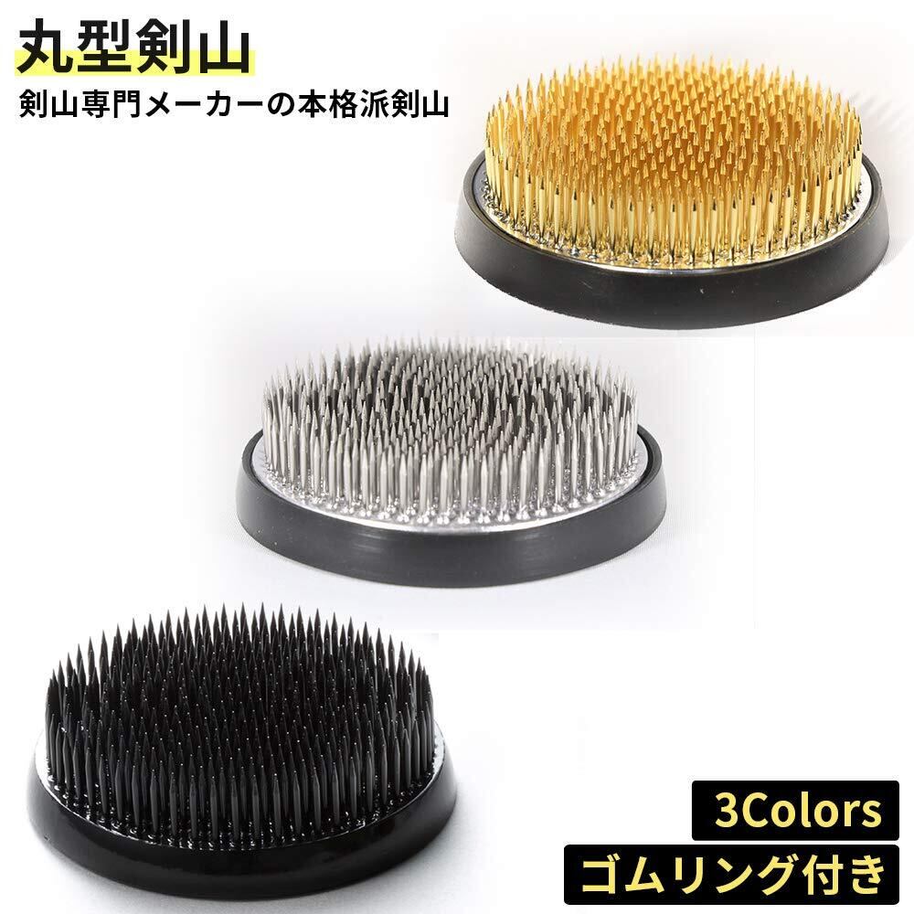 【2025最新】京都 花明かり 剣山 生け花 丸剣山 ゴムリング付き 日本製 本格派 花留 (小丸, 黒剣山(ブラック))