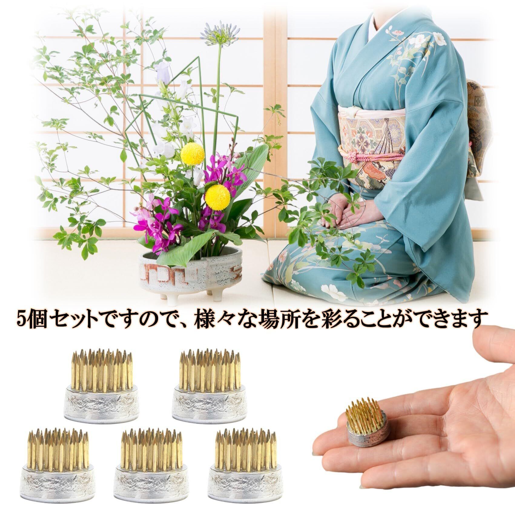 空間の雰囲気を華やかに彩る一輪挿し。このミニ剣山は一輪挿しにも適しています。5個ございますので様々な場所に「侘び寂び」が表現された生け花をお飾りください。