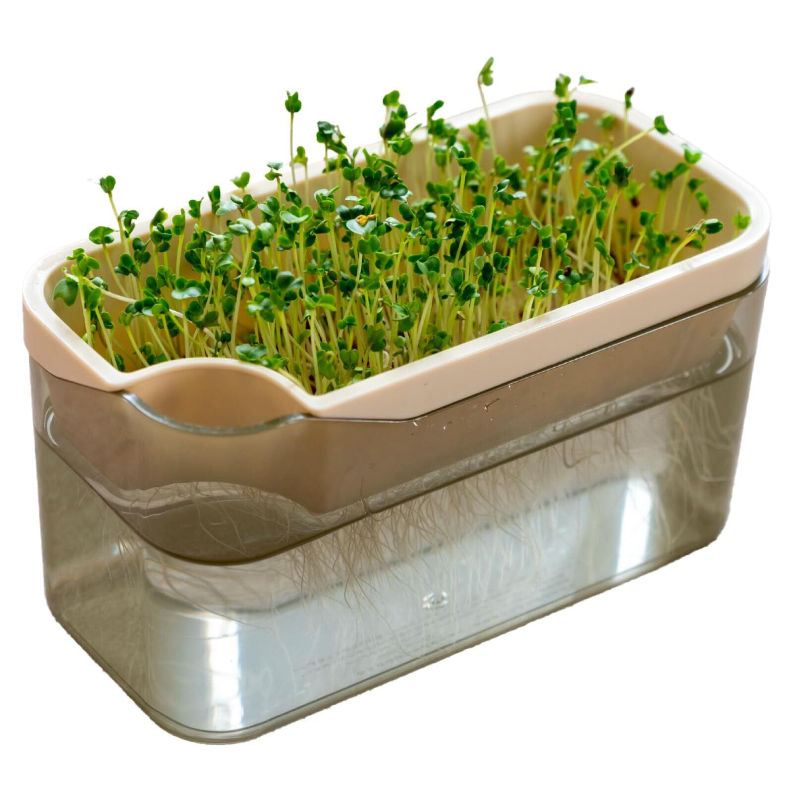 健康野菜、スプラウトを室内で簡単に育てられてグリーンインテリアにもなるスプラウトポット。栽培容器としてだけでなく、リビングやキッチンに置いたときにおしゃれなインテリアになるようにデザインしました。