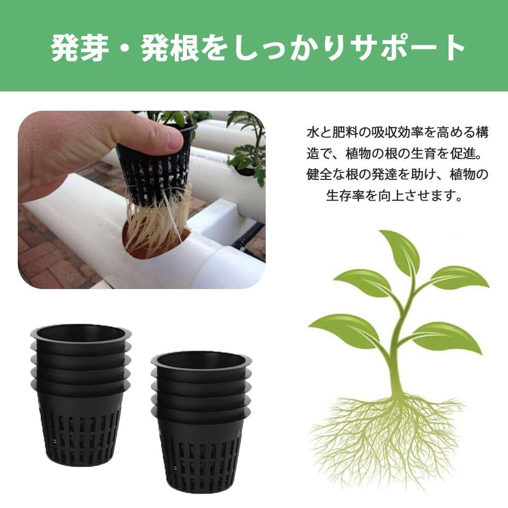 【発芽・発根をしっかりサポート】水と肥料の吸収効率を高める構造で、植物の根の生育を促進。健全な根の発達を助け、植物の生存率を向上させます。初心者でも安心して水耕栽培を始められる設計です。